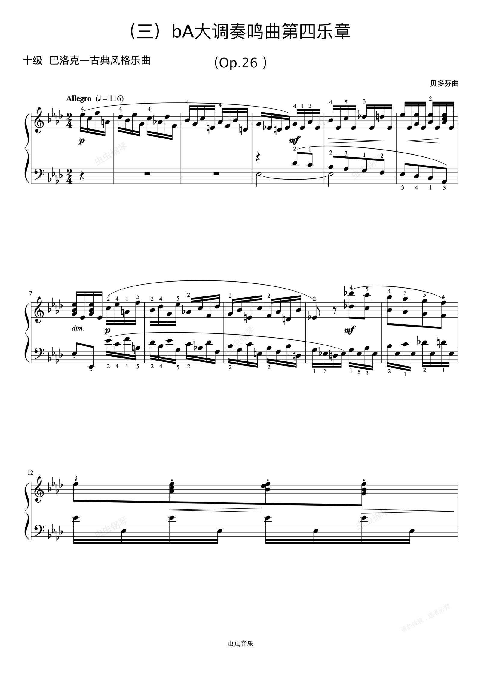 钢琴谱:10级 降A大调奏鸣曲第四乐章《音协钢琴考级曲目 9-10级》