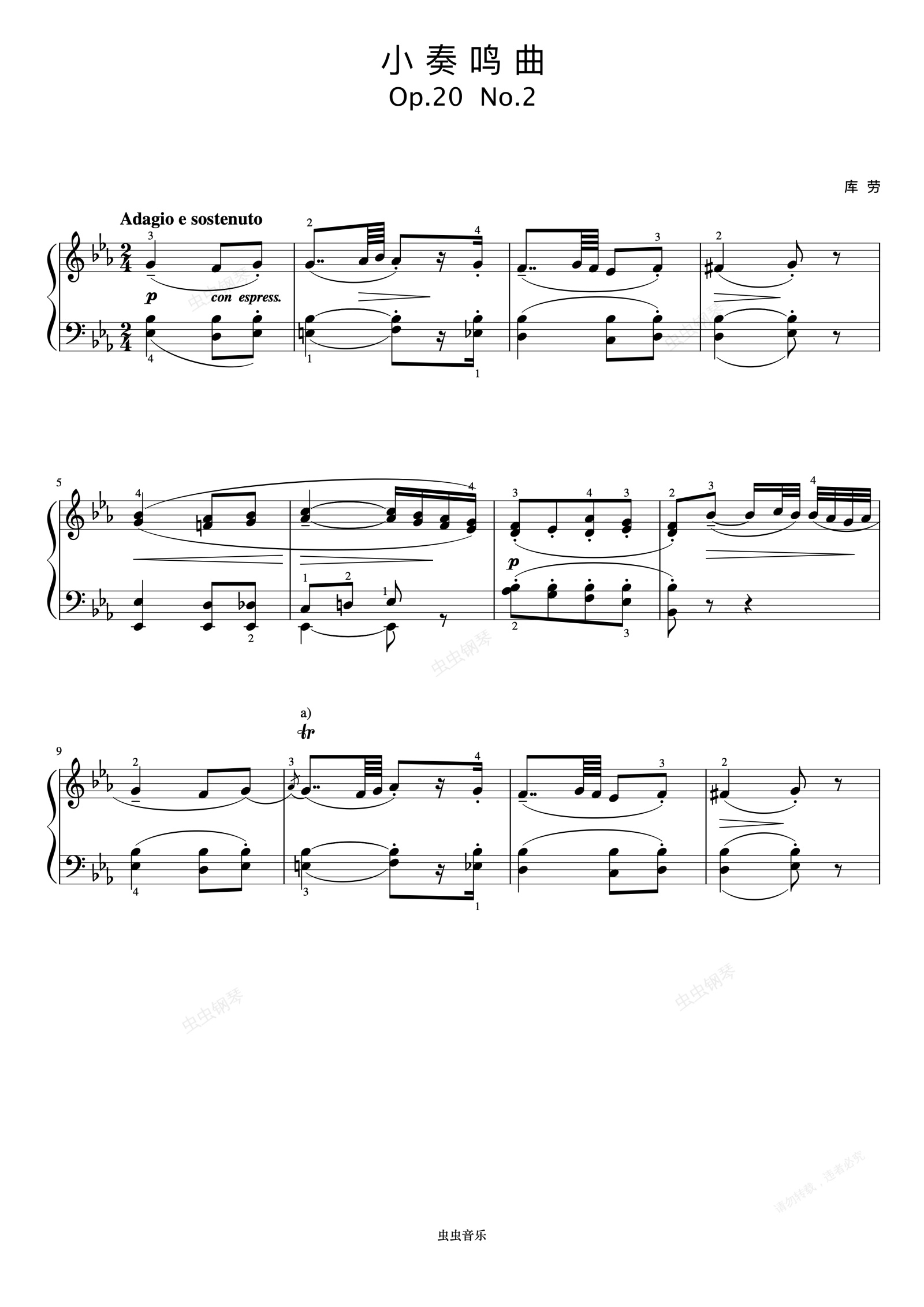 钢琴谱:小奏鸣曲 Op.20 No.2 第二乐章《小奏鸣曲集》