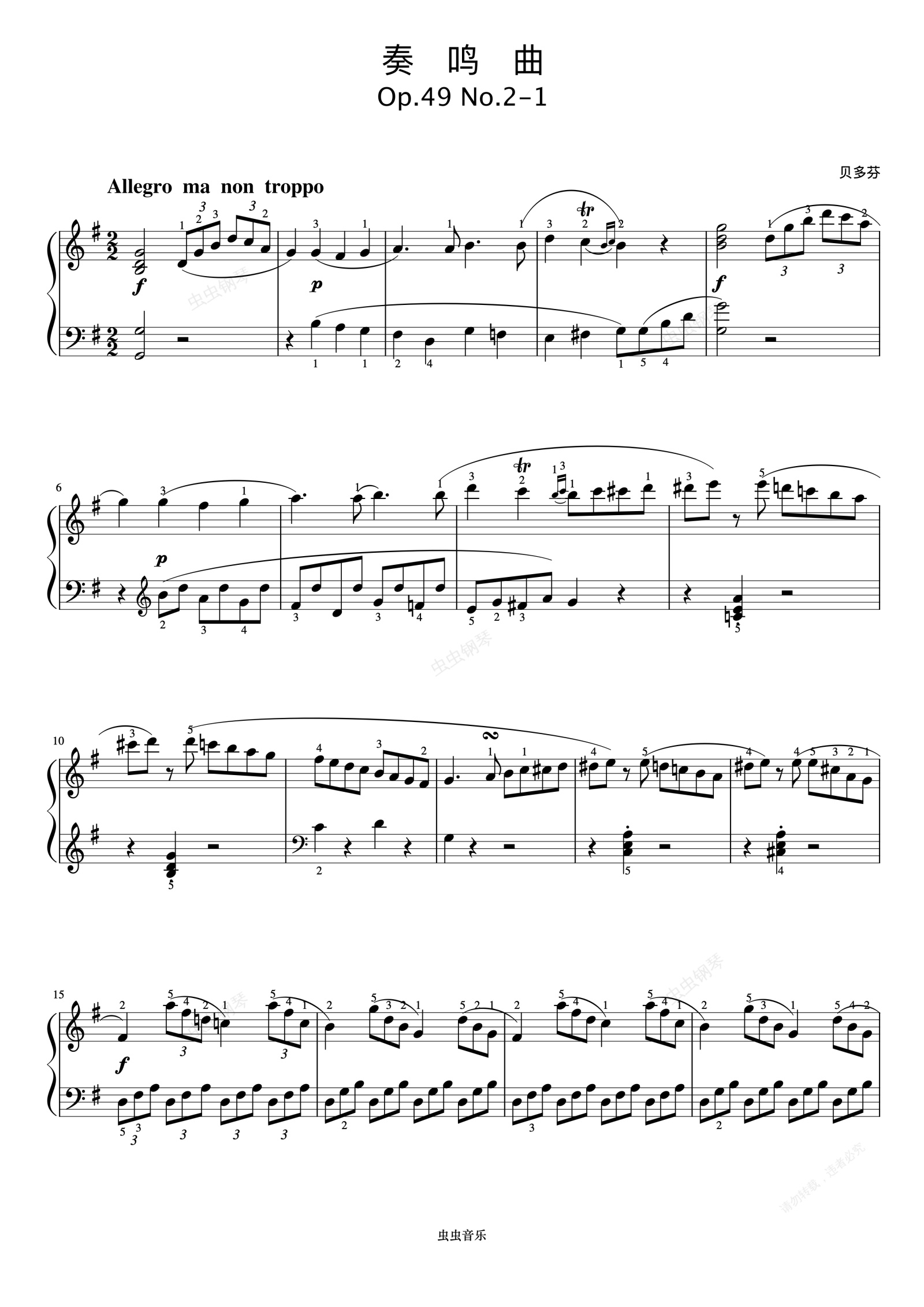 钢琴谱:奏鸣曲 Op.49 No.2 第一乐章《小奏鸣曲集》