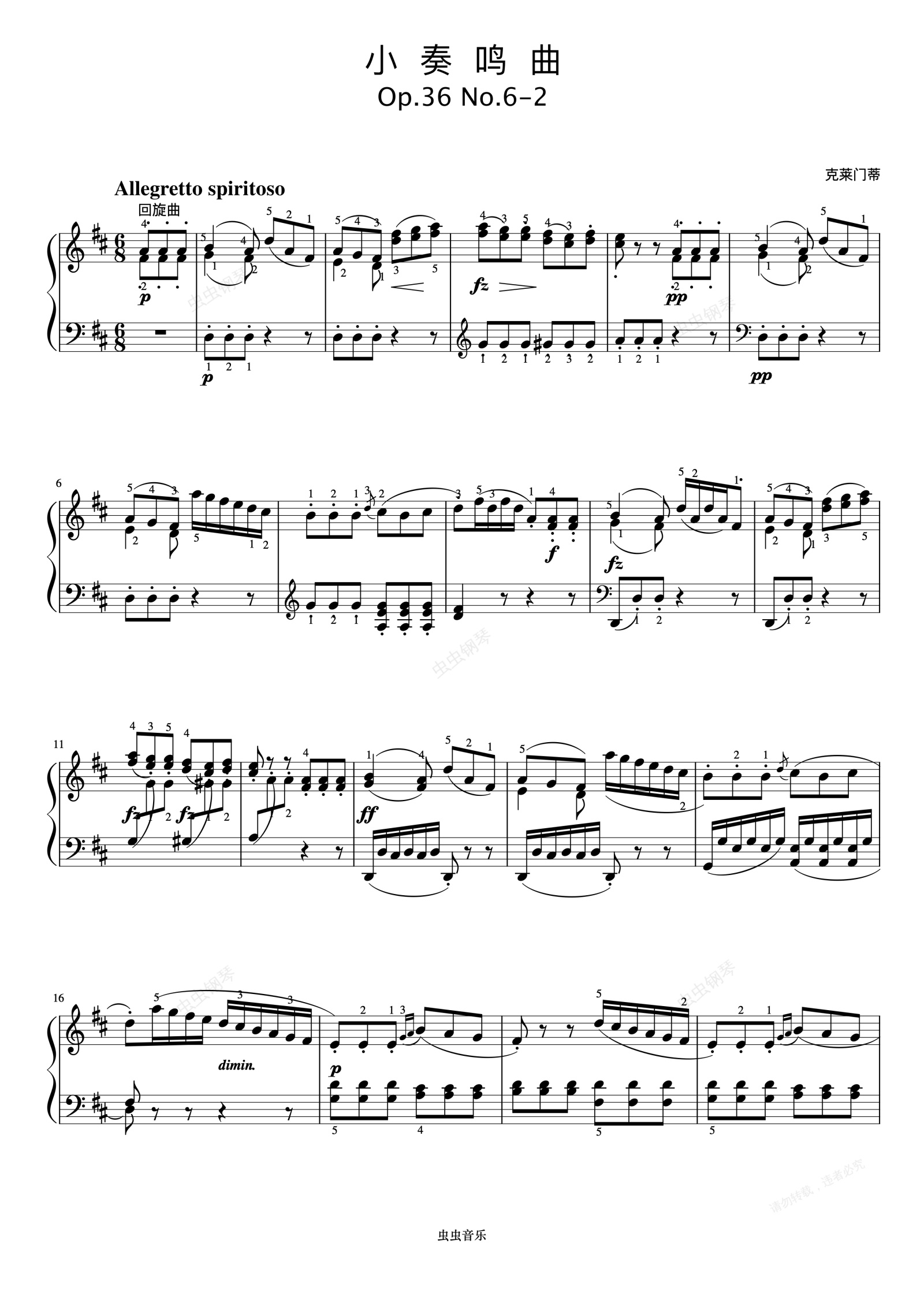 钢琴谱:小奏鸣曲 Op.36 No.6 第二乐章《小奏鸣曲集》