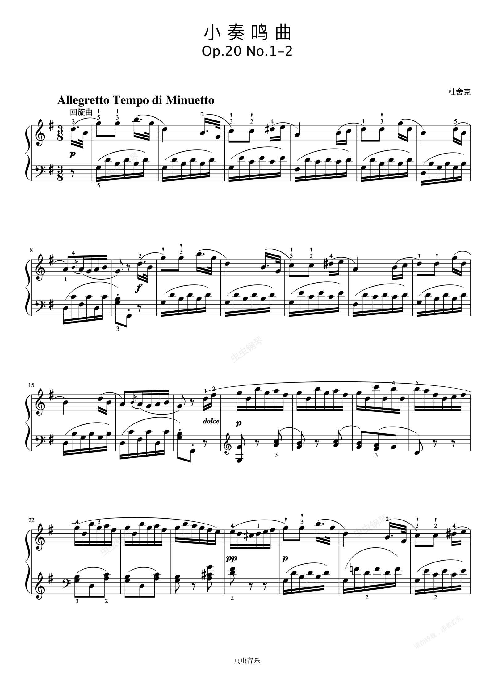 钢琴谱:小奏鸣曲 Op.20 No.1 第二乐章(杜舍克)《小奏鸣曲集》