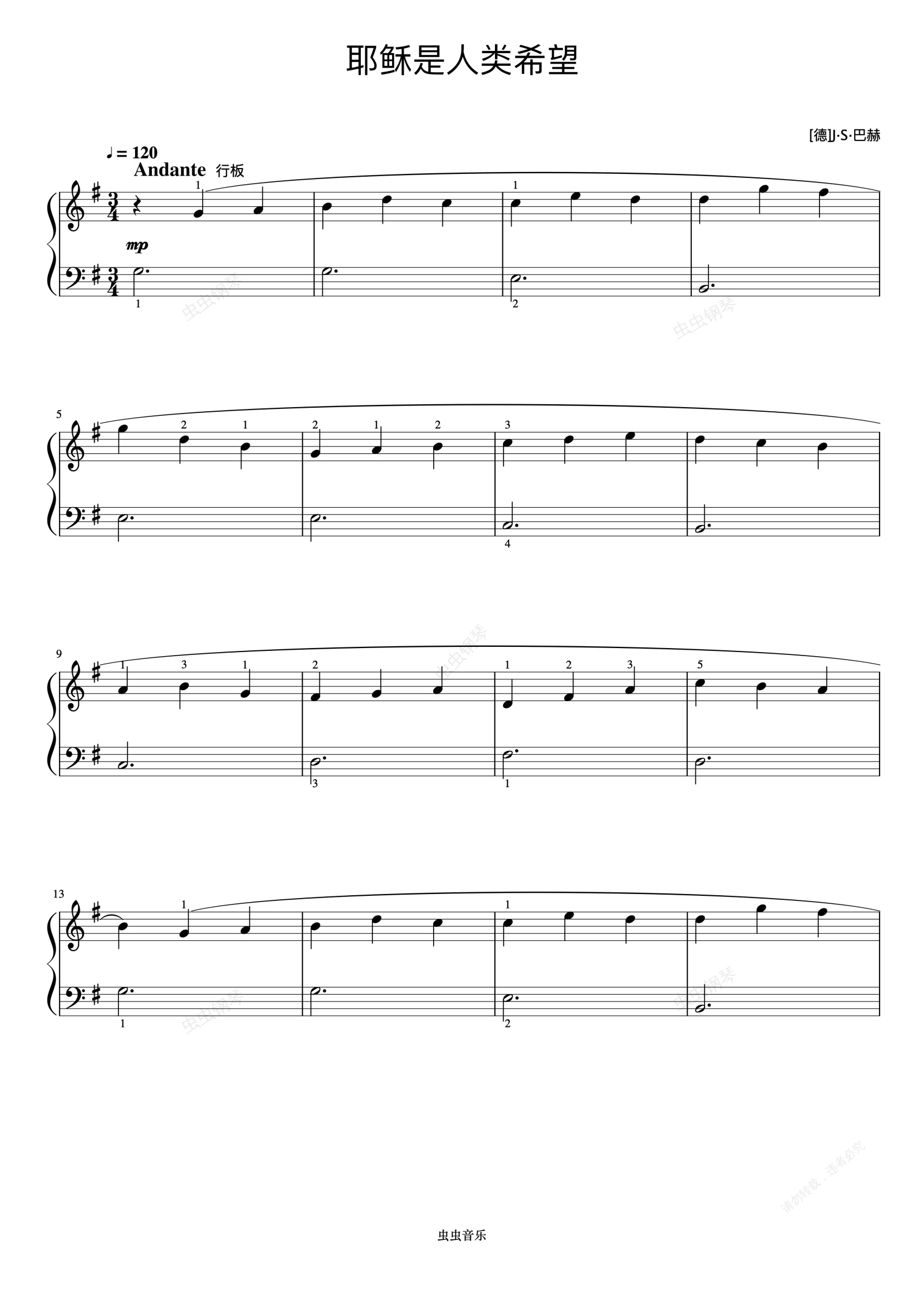 钢琴谱:耶稣是人类希望