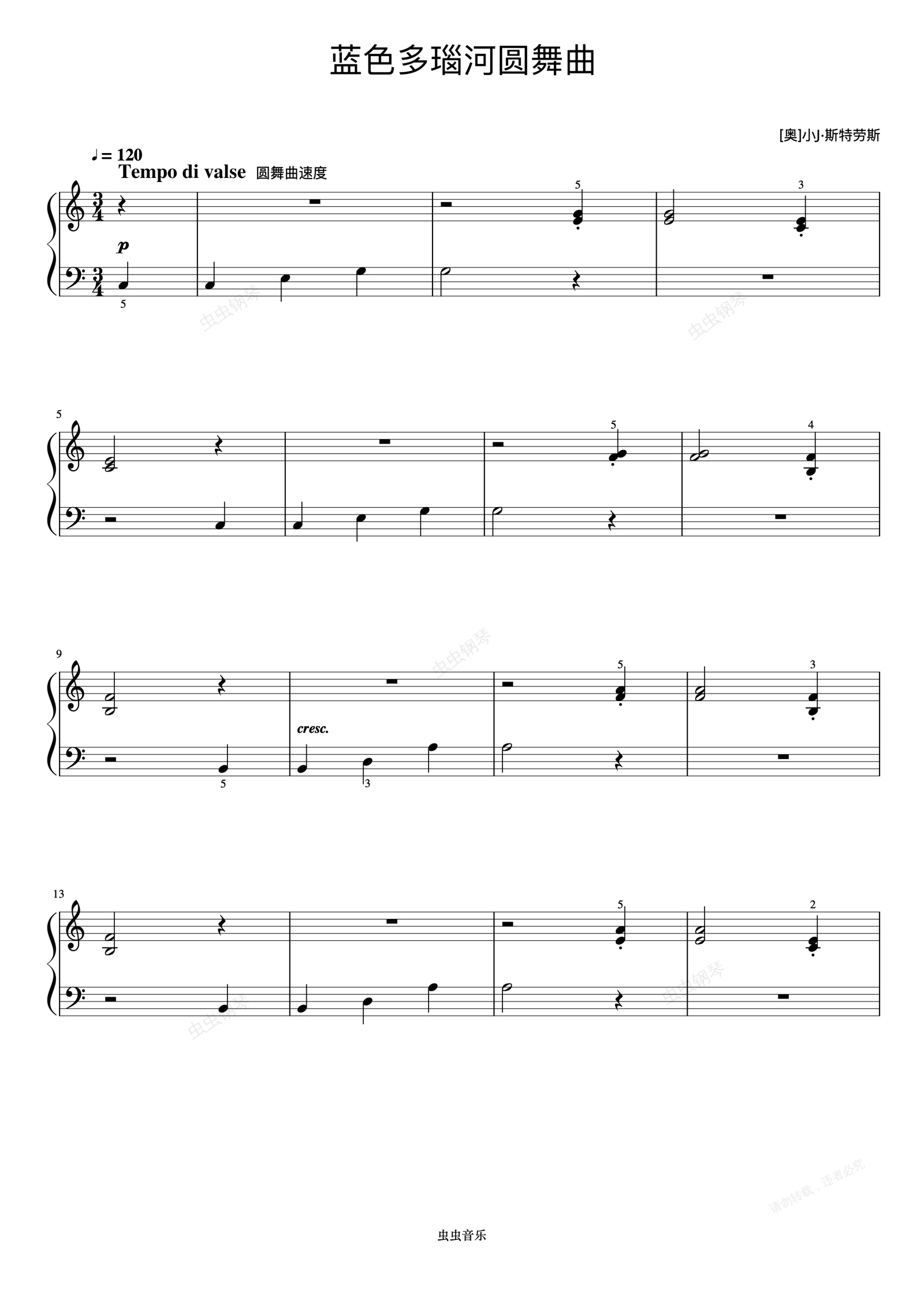 钢琴谱:蓝色多瑙河圆舞曲