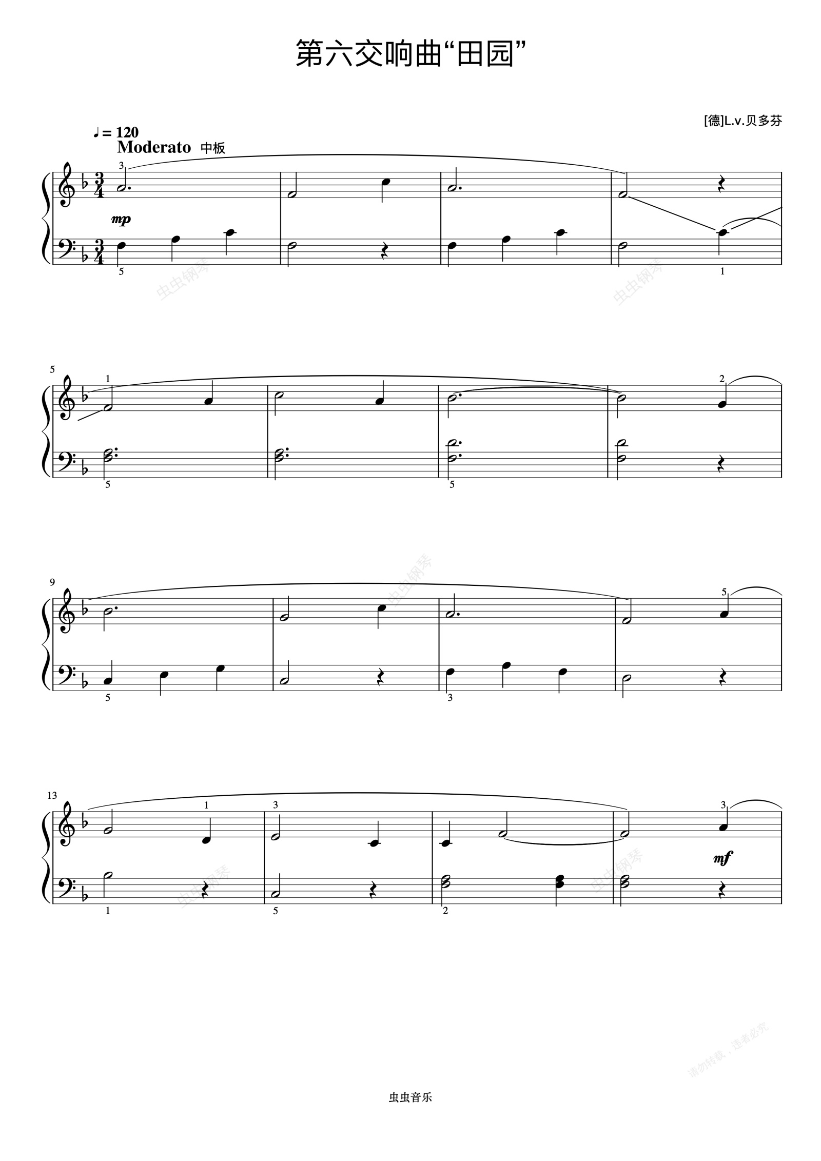 钢琴谱:第六交响曲“田园”