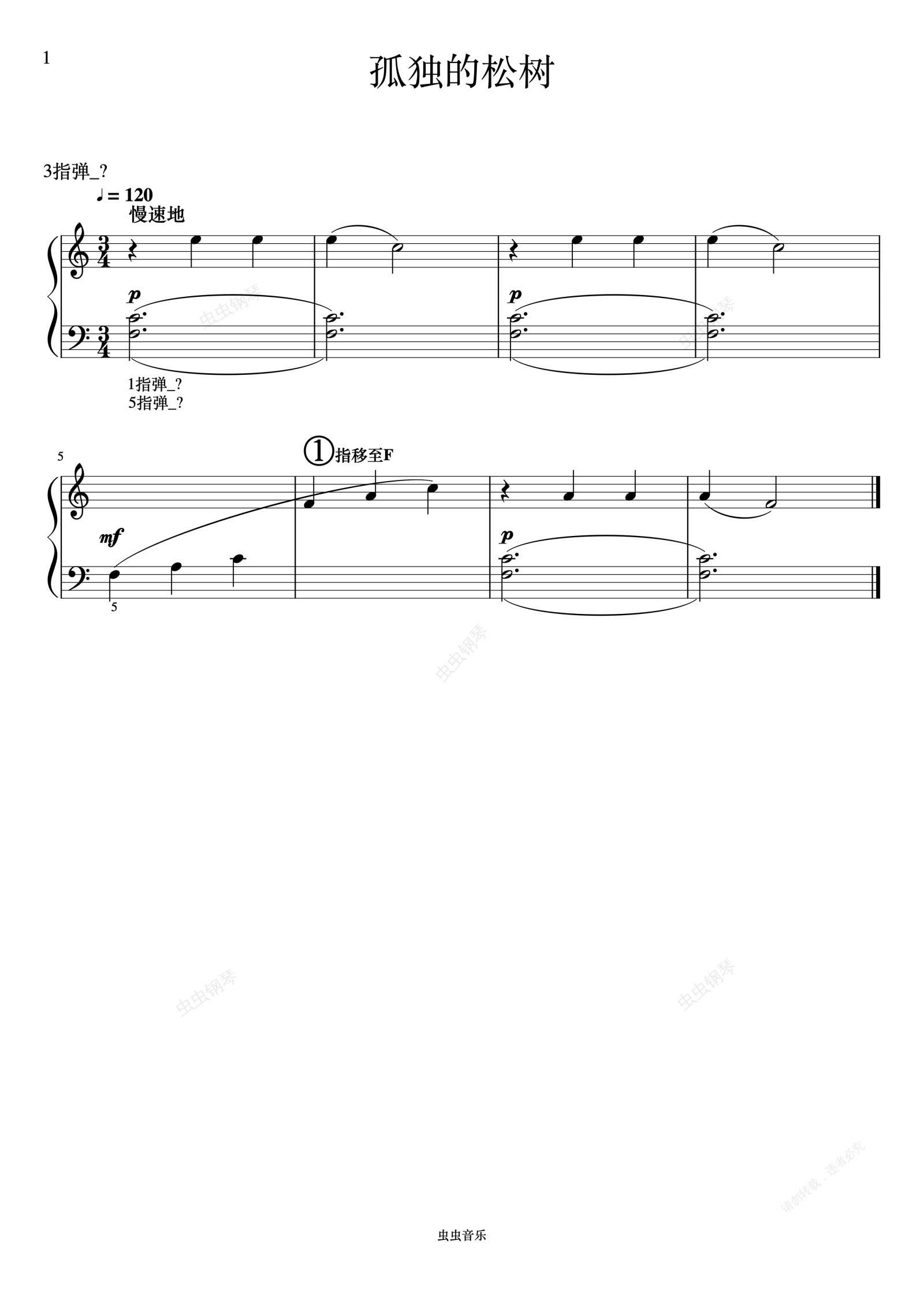 钢琴谱:单元二 孤独的松树《FBE 课程和乐理》