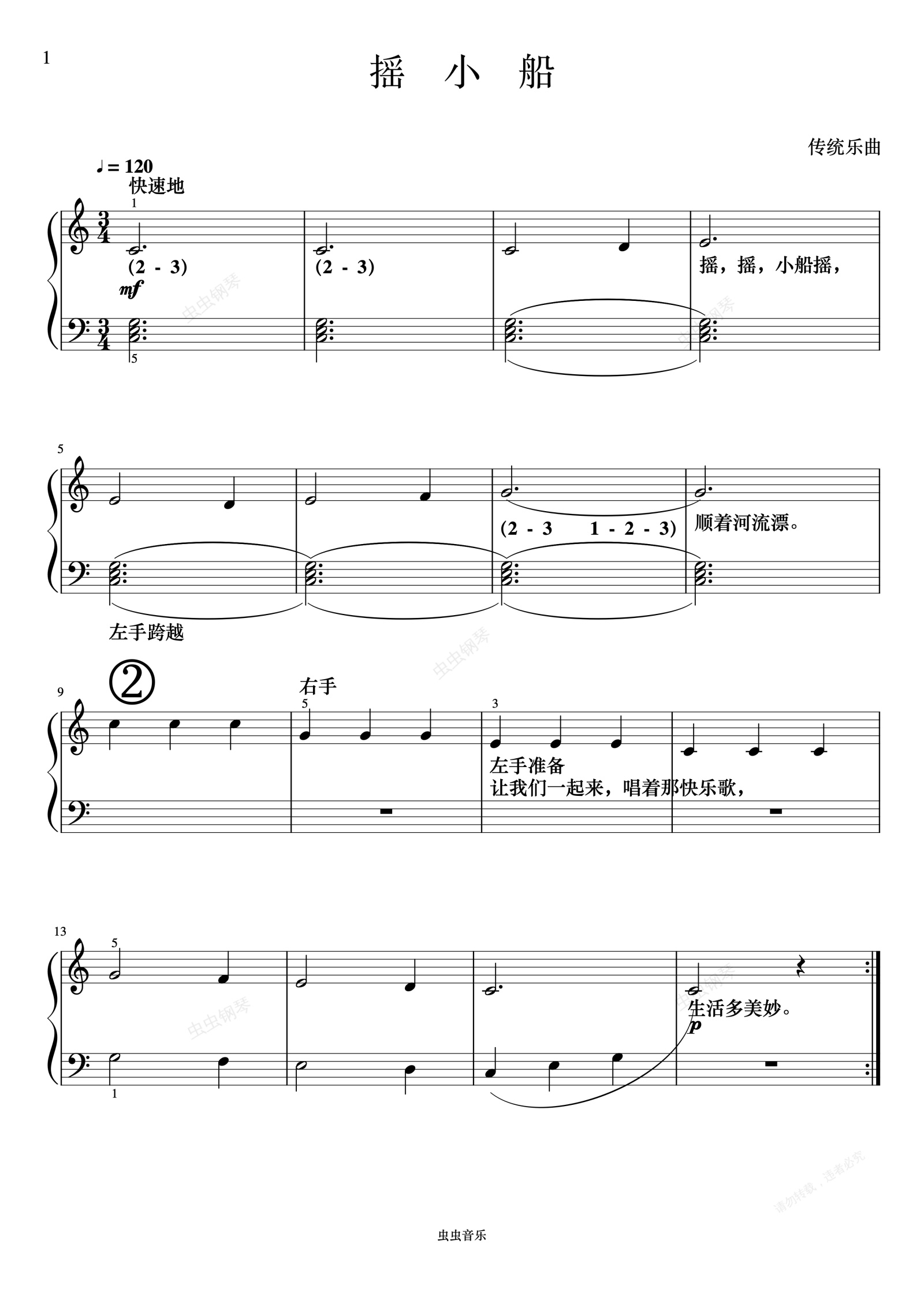 钢琴谱:单元八 摇小船《FBE 课程和乐理》