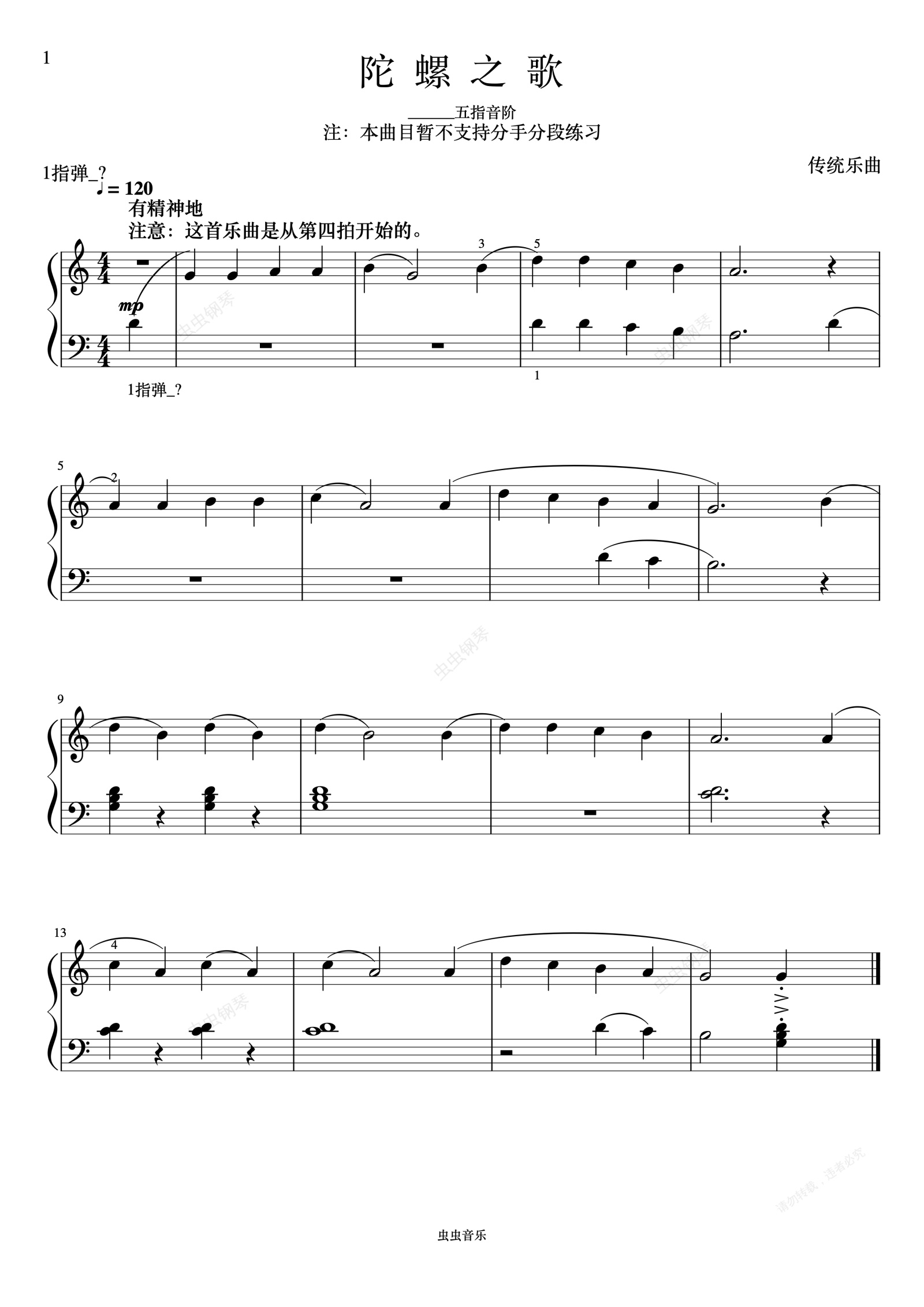 钢琴谱:单元十 陀螺之歌《FBE 课程和乐理》