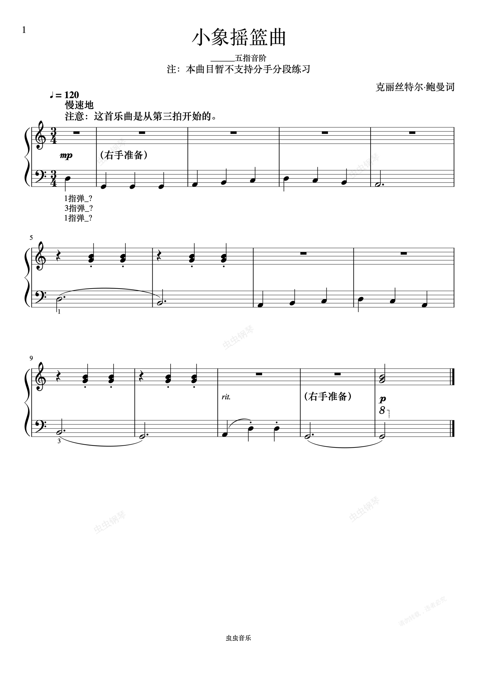 钢琴谱:单元十 小象摇篮曲《FBE 课程和乐理》