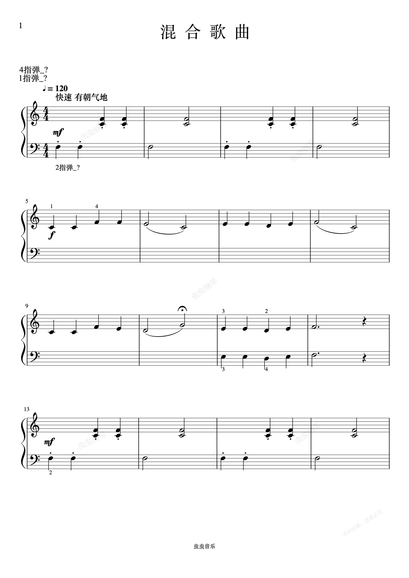 钢琴谱:单元四 混合歌曲《FBE 课程和乐理》