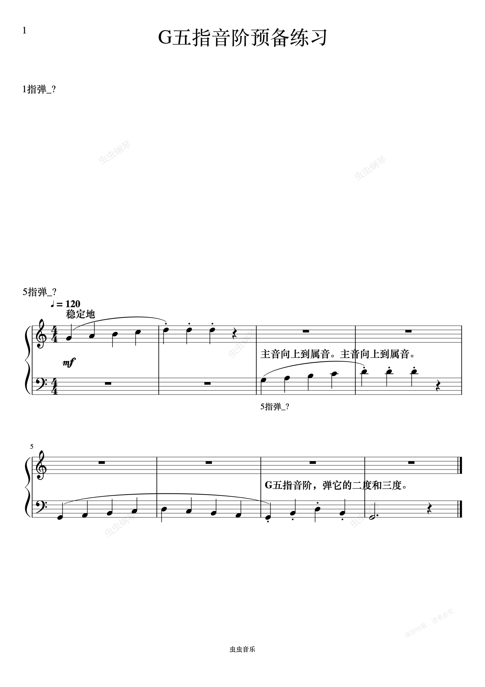 钢琴谱:单元十 G五指音阶预备练习《FBE 课程和乐理》