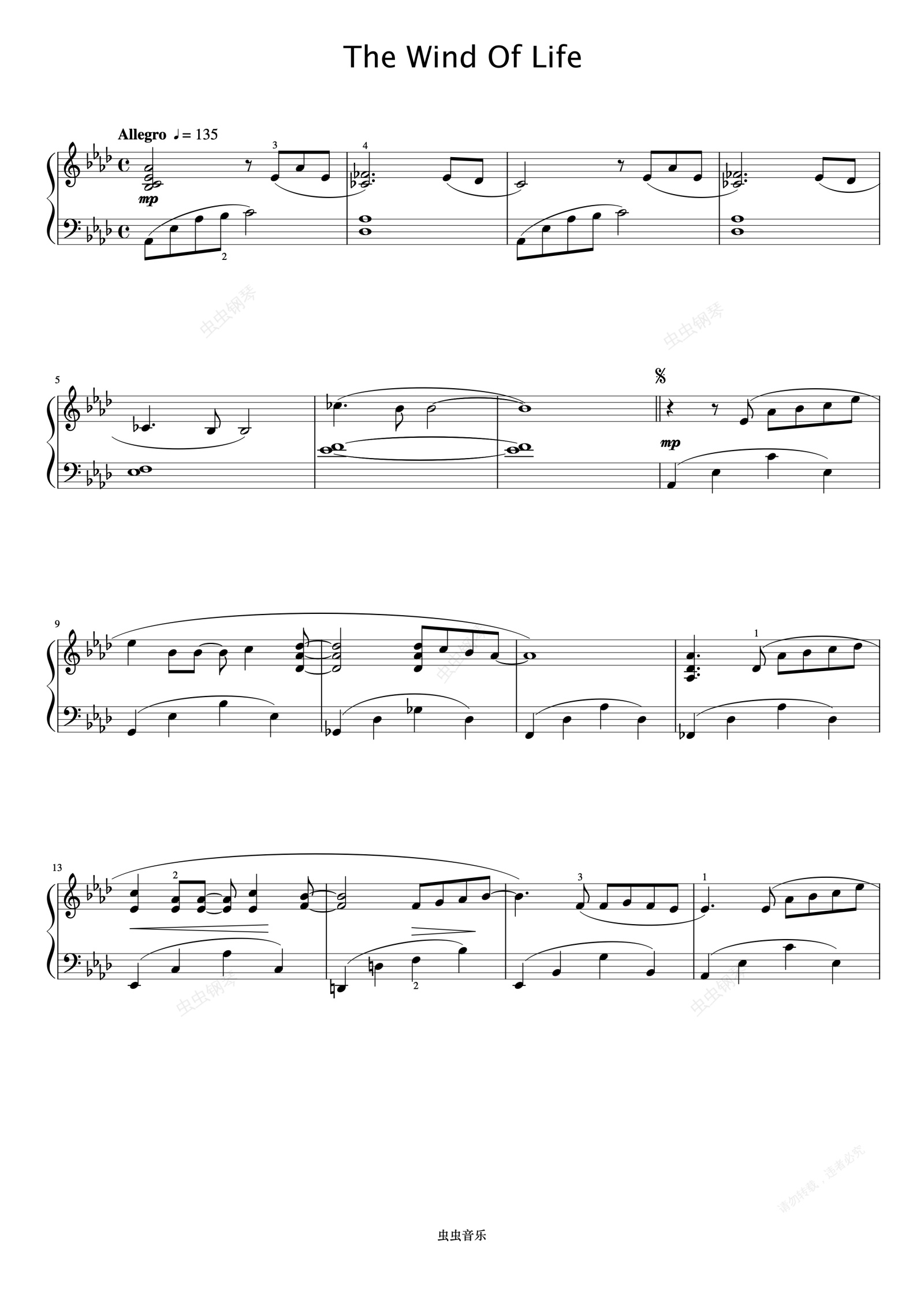 钢琴谱:The Wind Of Life《久石让钢琴作品精选集》