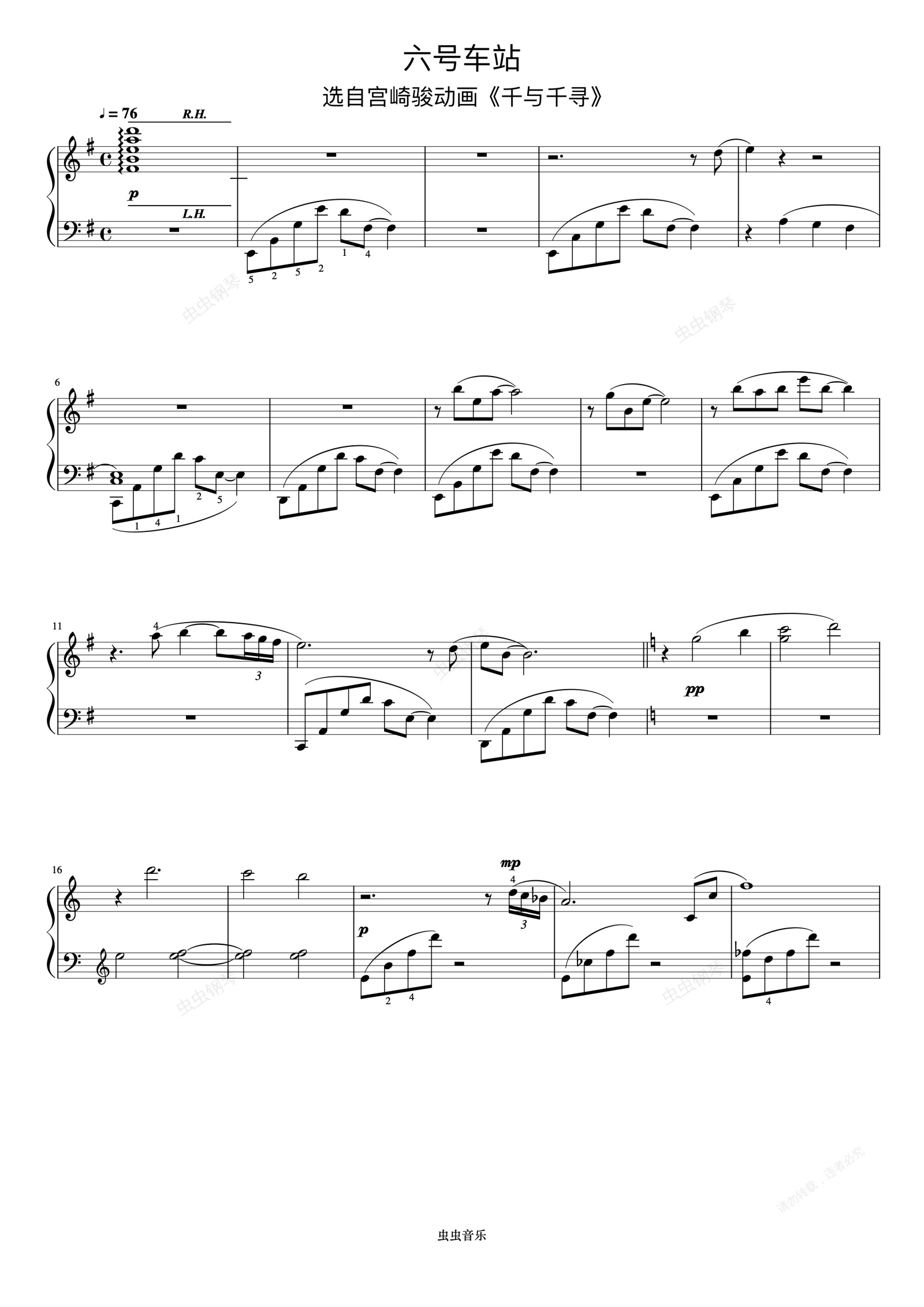 钢琴谱:六号车站《久石让钢琴作品精选集》