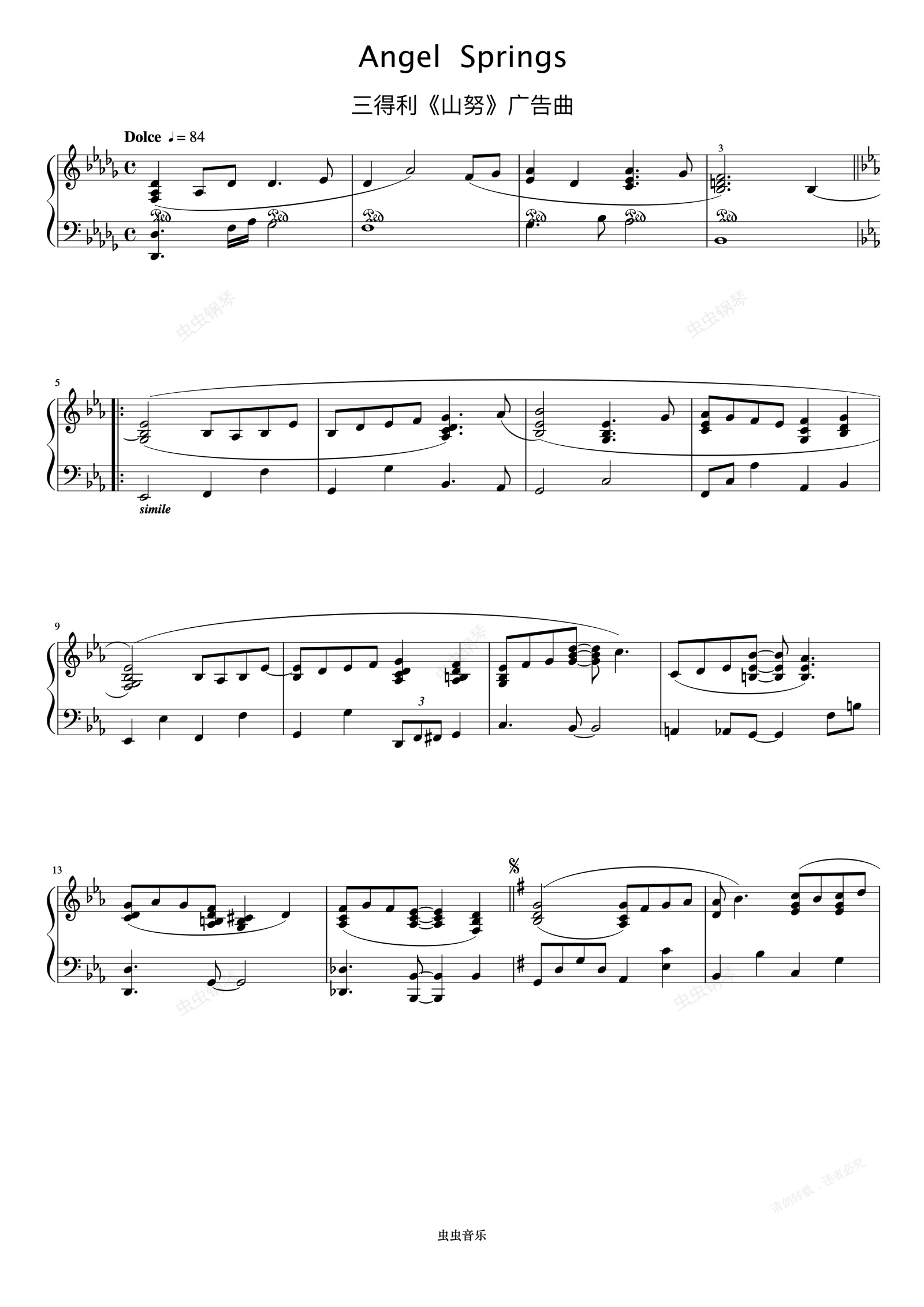 钢琴谱:Angel Springs《久石让钢琴作品精选集》