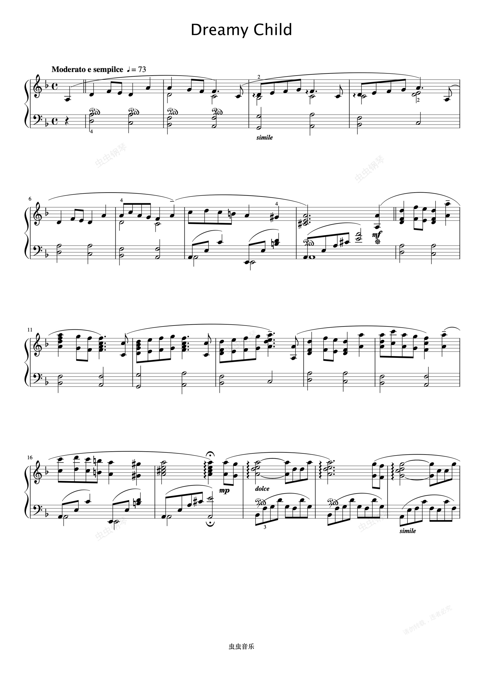钢琴谱:Dreamy Child《久石让钢琴作品精选集》