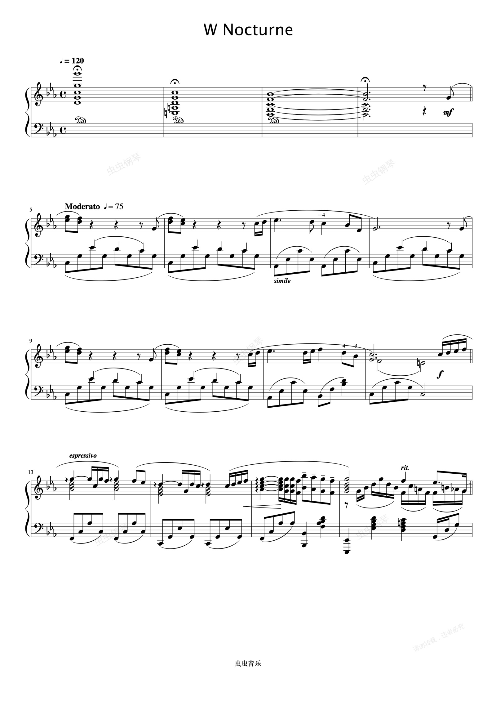 钢琴谱:W Nocturne《久石让钢琴作品精选集》