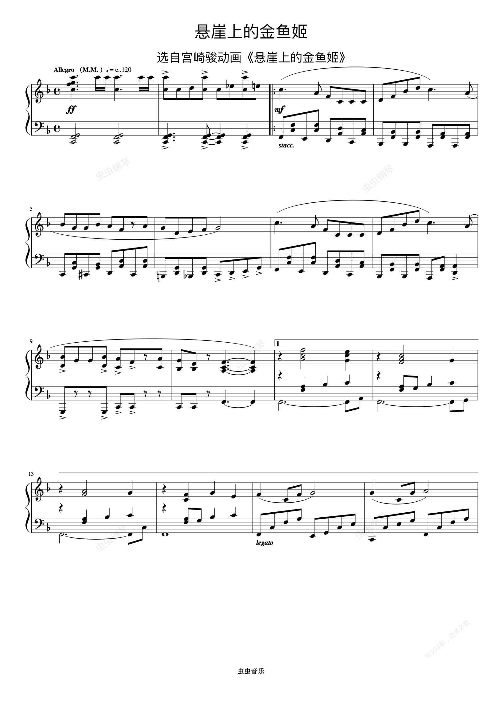 钢琴谱:悬崖上的金鱼姬《久石让钢琴作品精选集》
