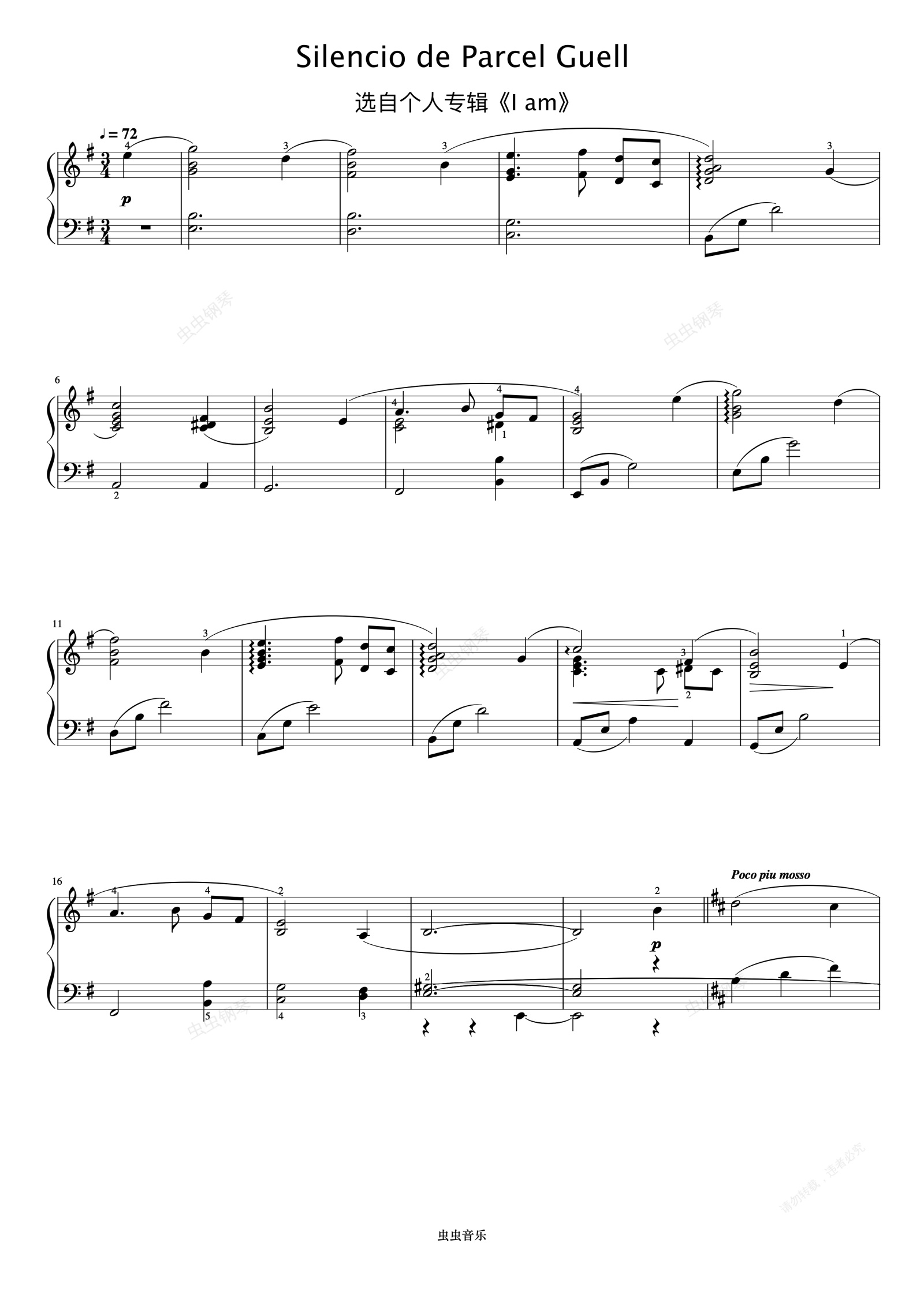 钢琴谱:Silencio de Parcel Guell《久石让钢琴作品精选集》