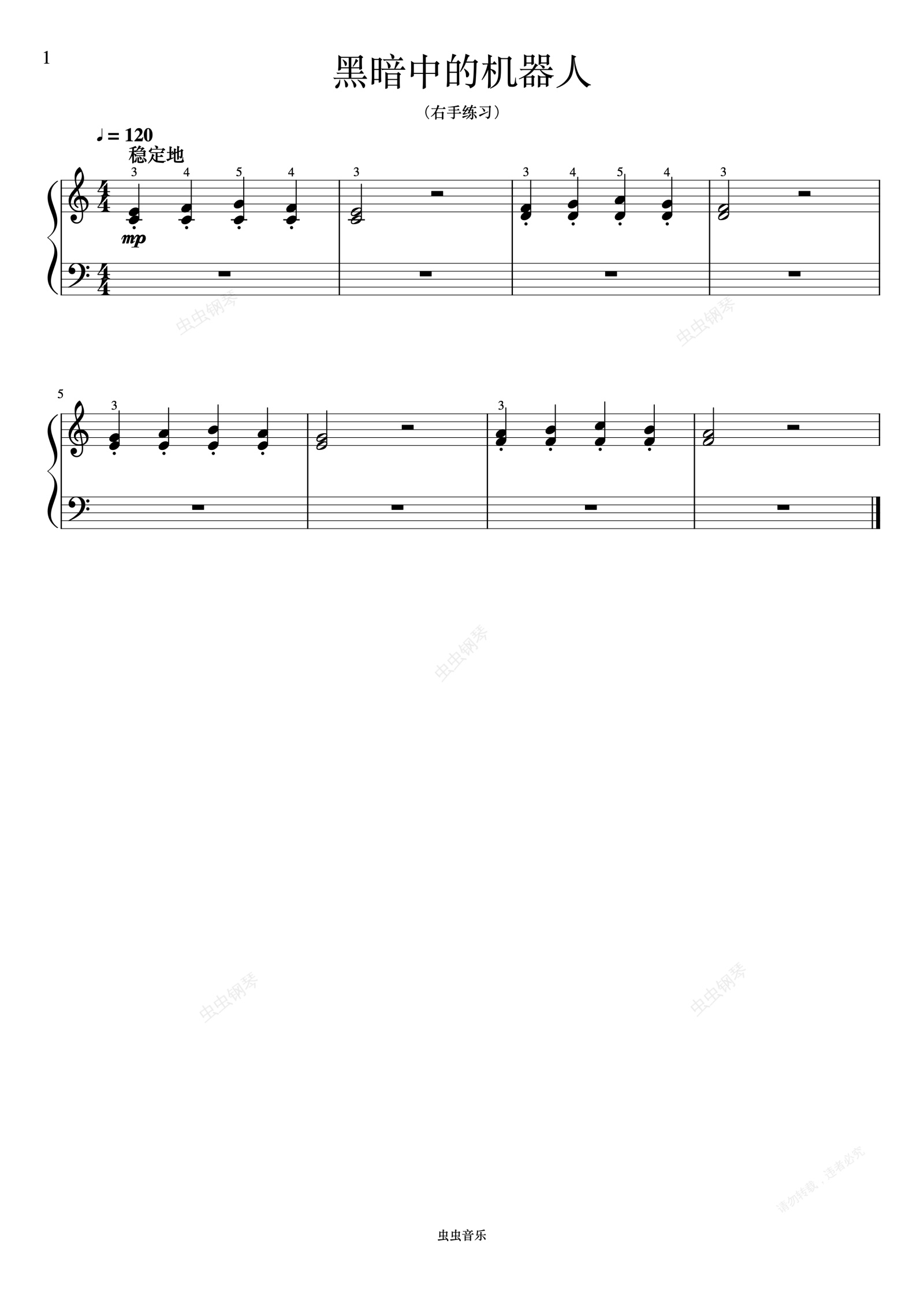 钢琴谱:黑暗中的机器人(右手练习)《FBE 技巧和演奏》