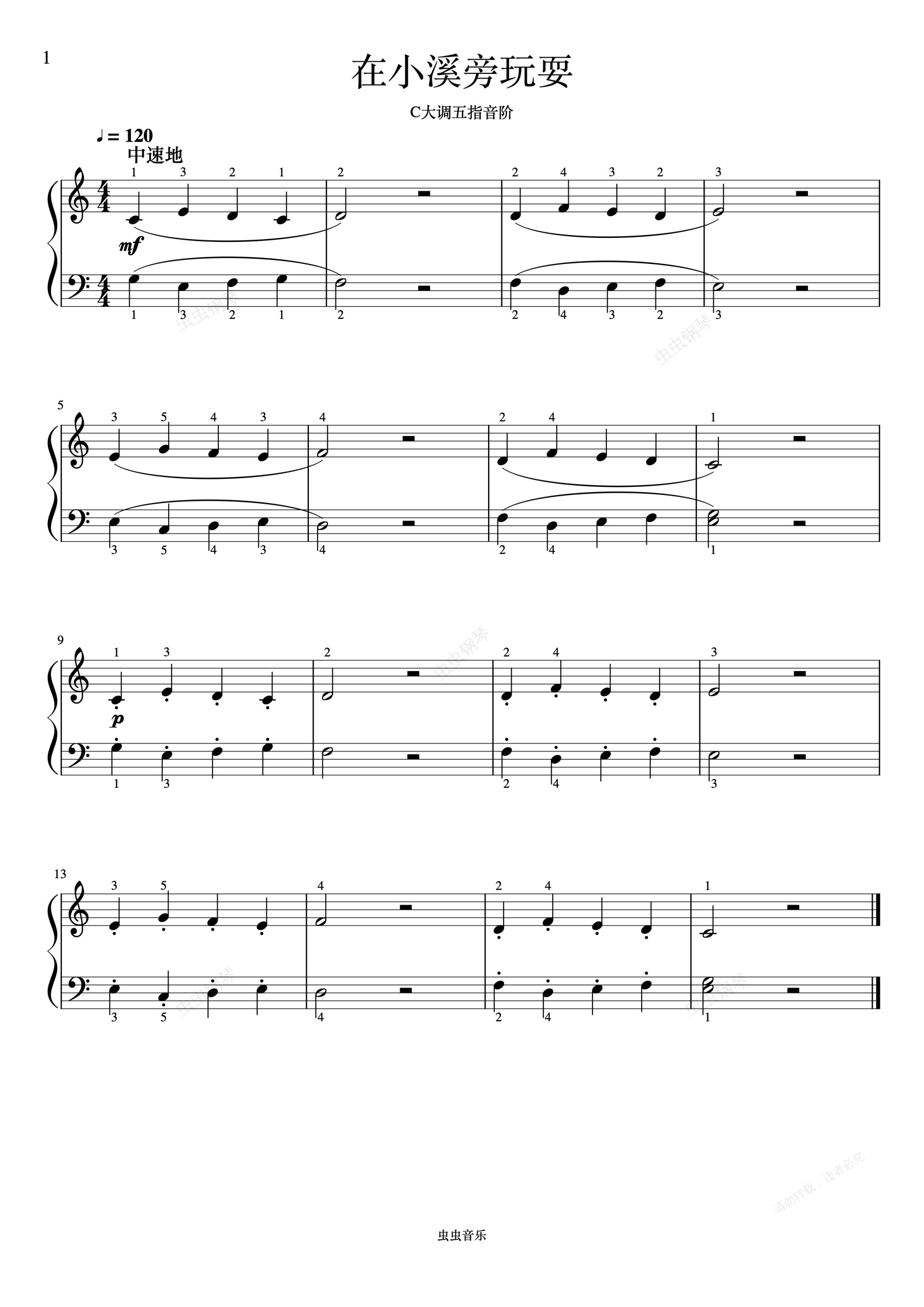 钢琴谱:在小溪旁玩耍《FBE  技巧和演奏》