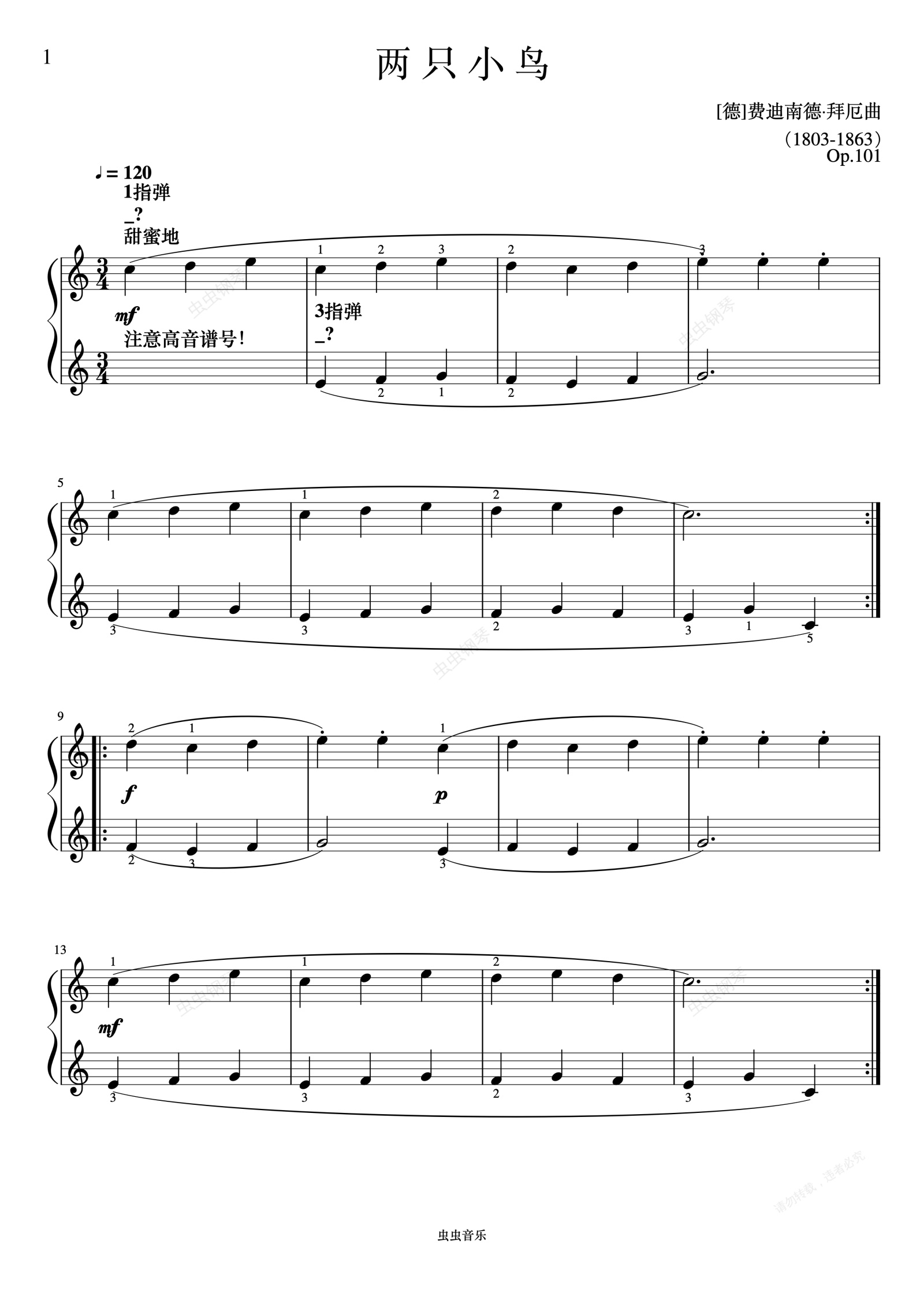 钢琴谱:两只小鸟《FBE 技巧和演奏》
