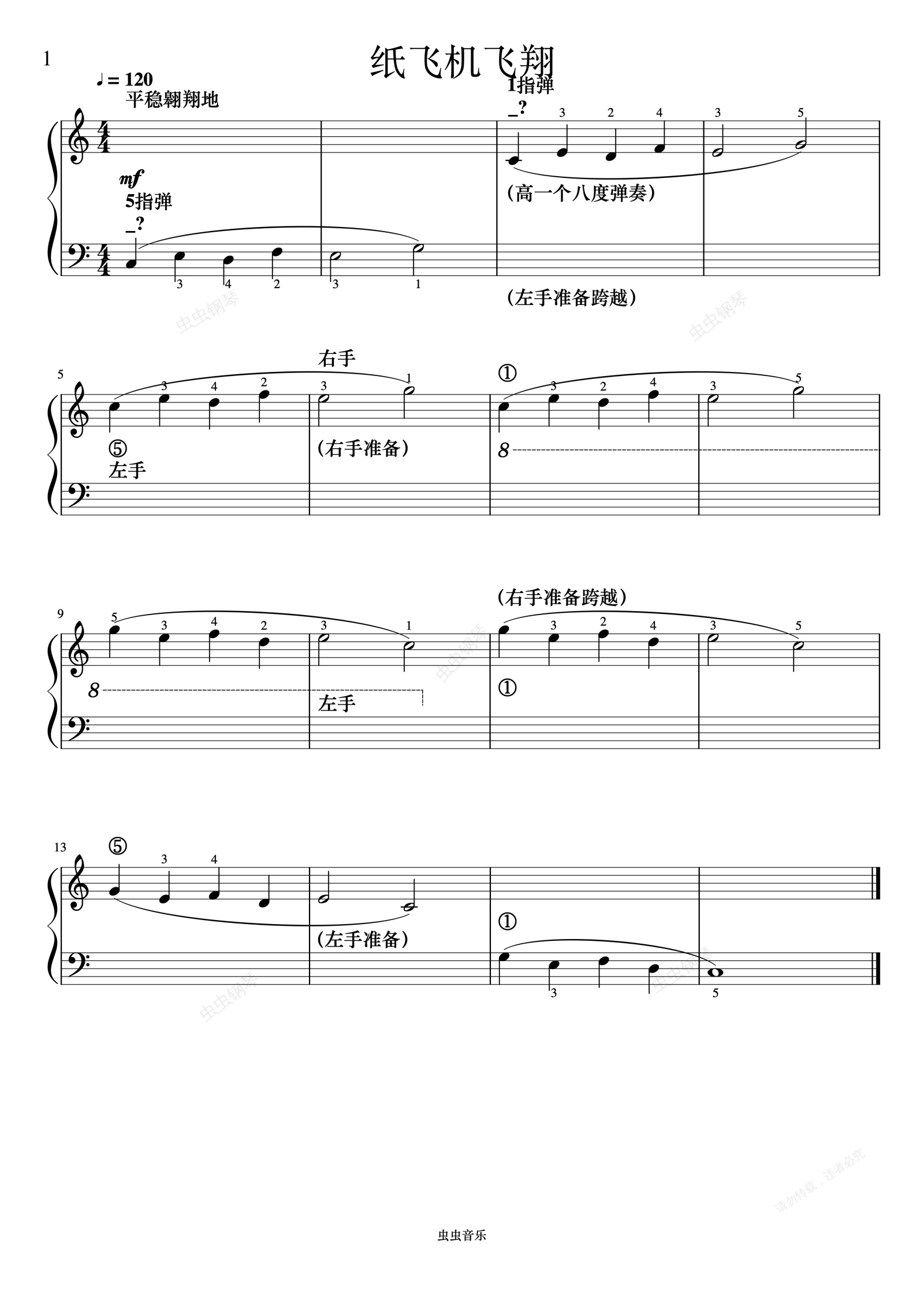 钢琴谱:纸飞机飞翔《FBE 技巧和演奏》