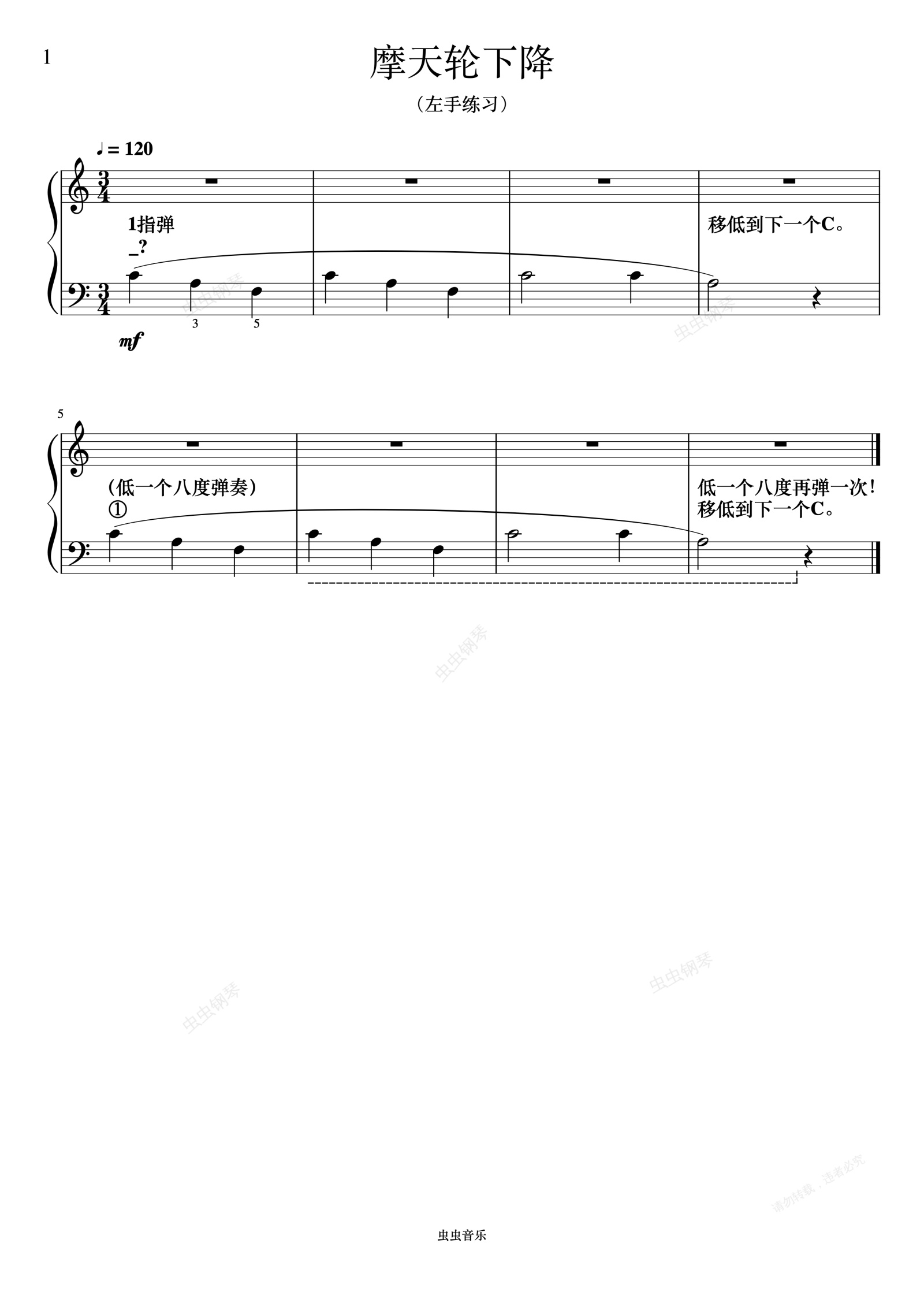 钢琴谱:摩天轮下降《FBE 技巧和演奏》