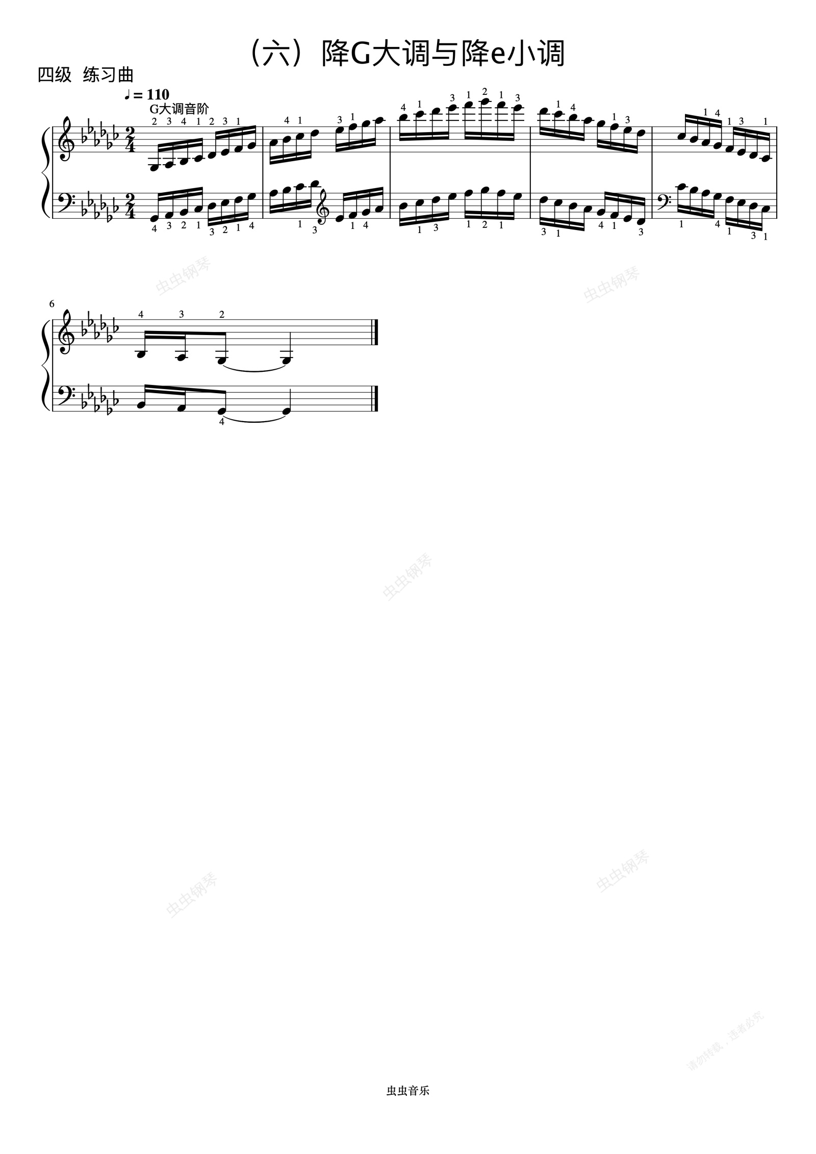 钢琴谱:4级 降G大调音阶《音协钢琴考级曲目 1-5级》