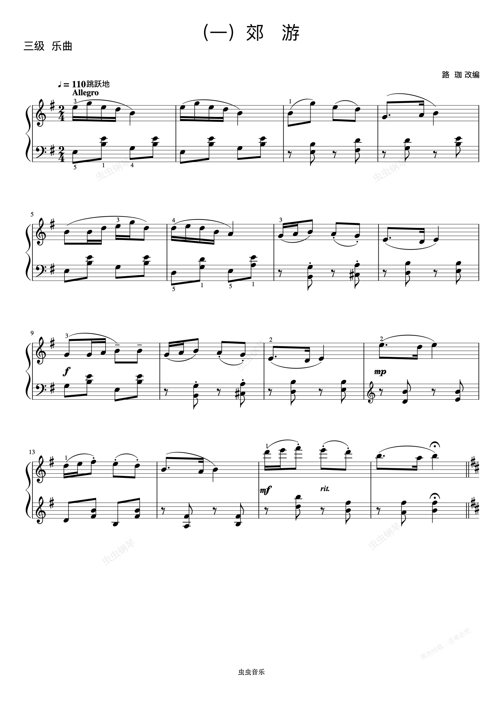 钢琴谱:3级 郊游《音协钢琴考级曲目 1-5级》