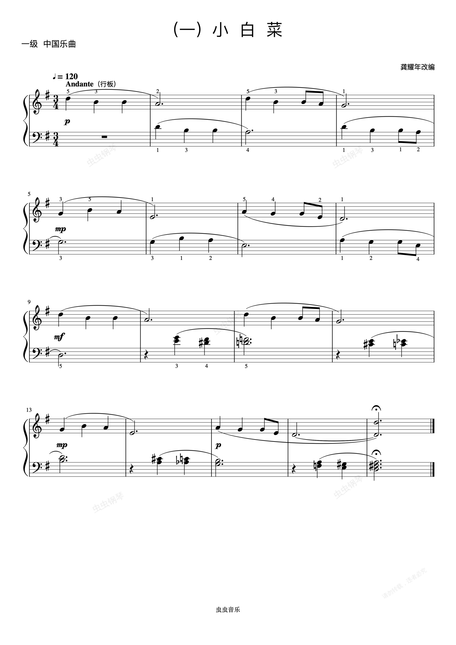 钢琴谱:1级 小白菜《音协钢琴考级曲目 1-5级》