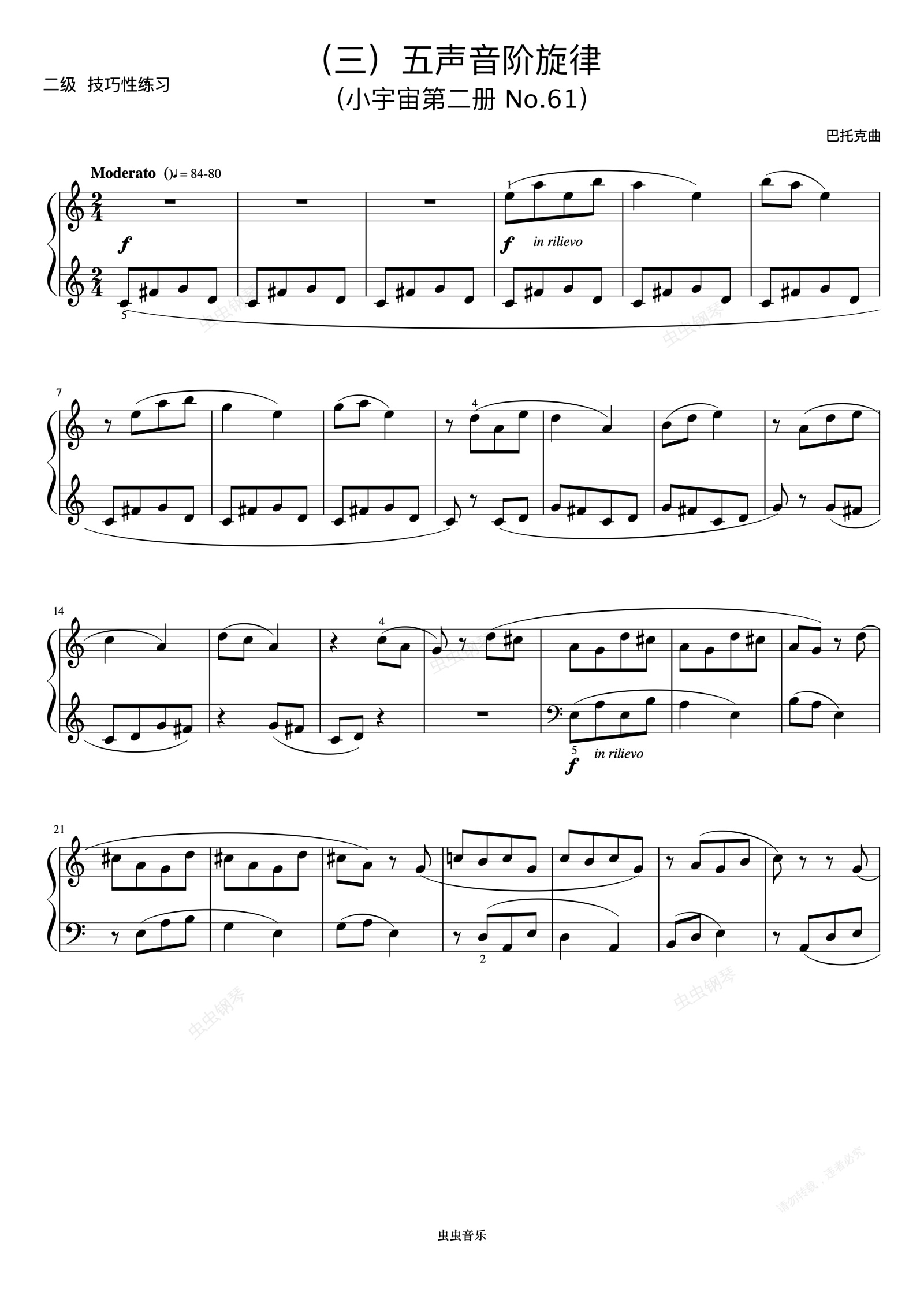 钢琴谱:2级 五声音阶旋律《音协钢琴考级曲目 1-5级》