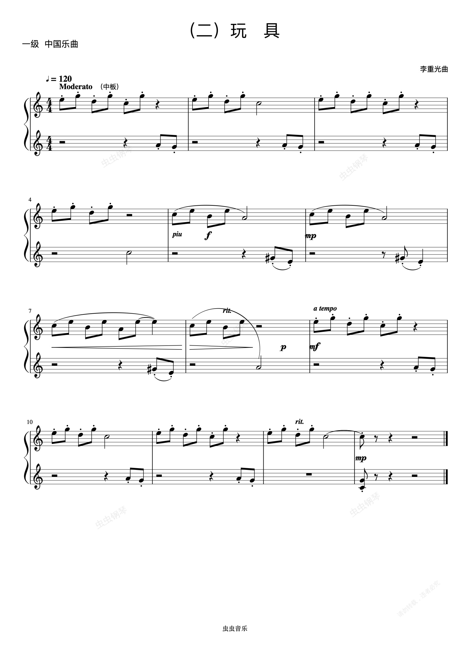 钢琴谱:1级 玩具《音协钢琴考级曲目 1-5级》