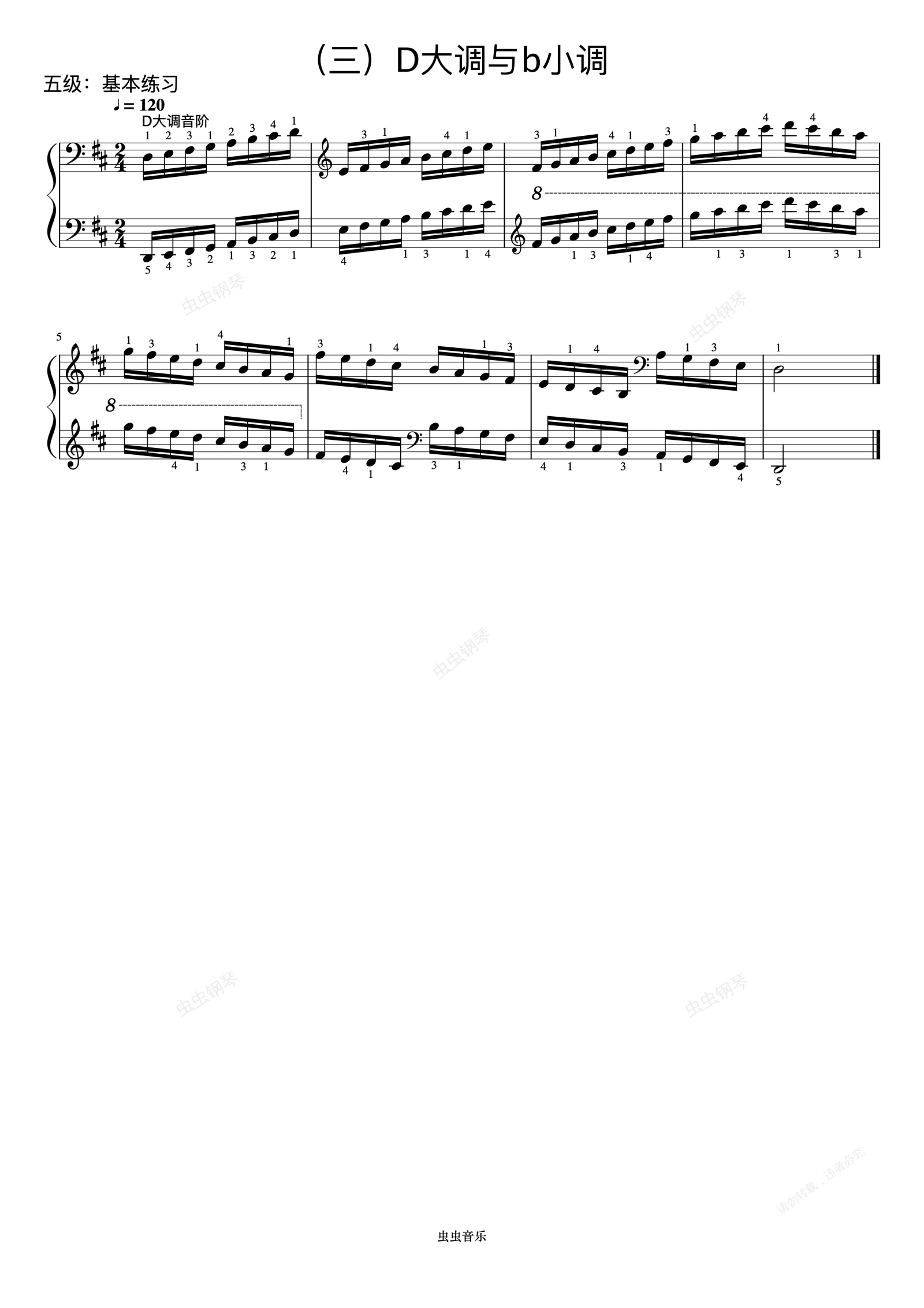 钢琴谱:5级 D大调音阶《音协钢琴考级曲目 1-5级》