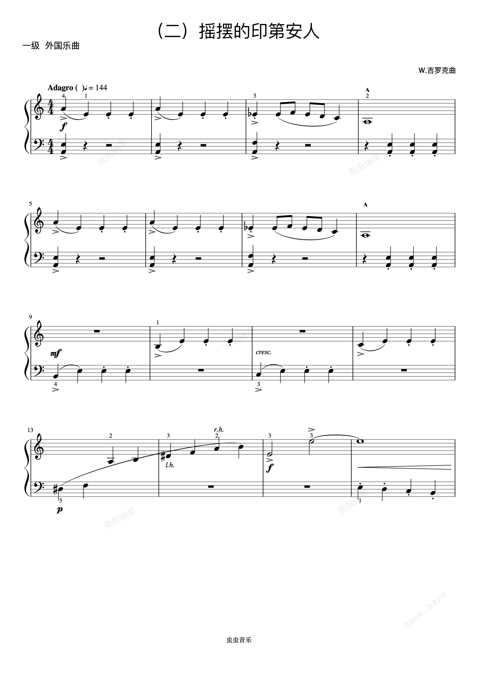 钢琴谱:1级 摇摆的印第安人《音协钢琴考级曲目 1-5级》