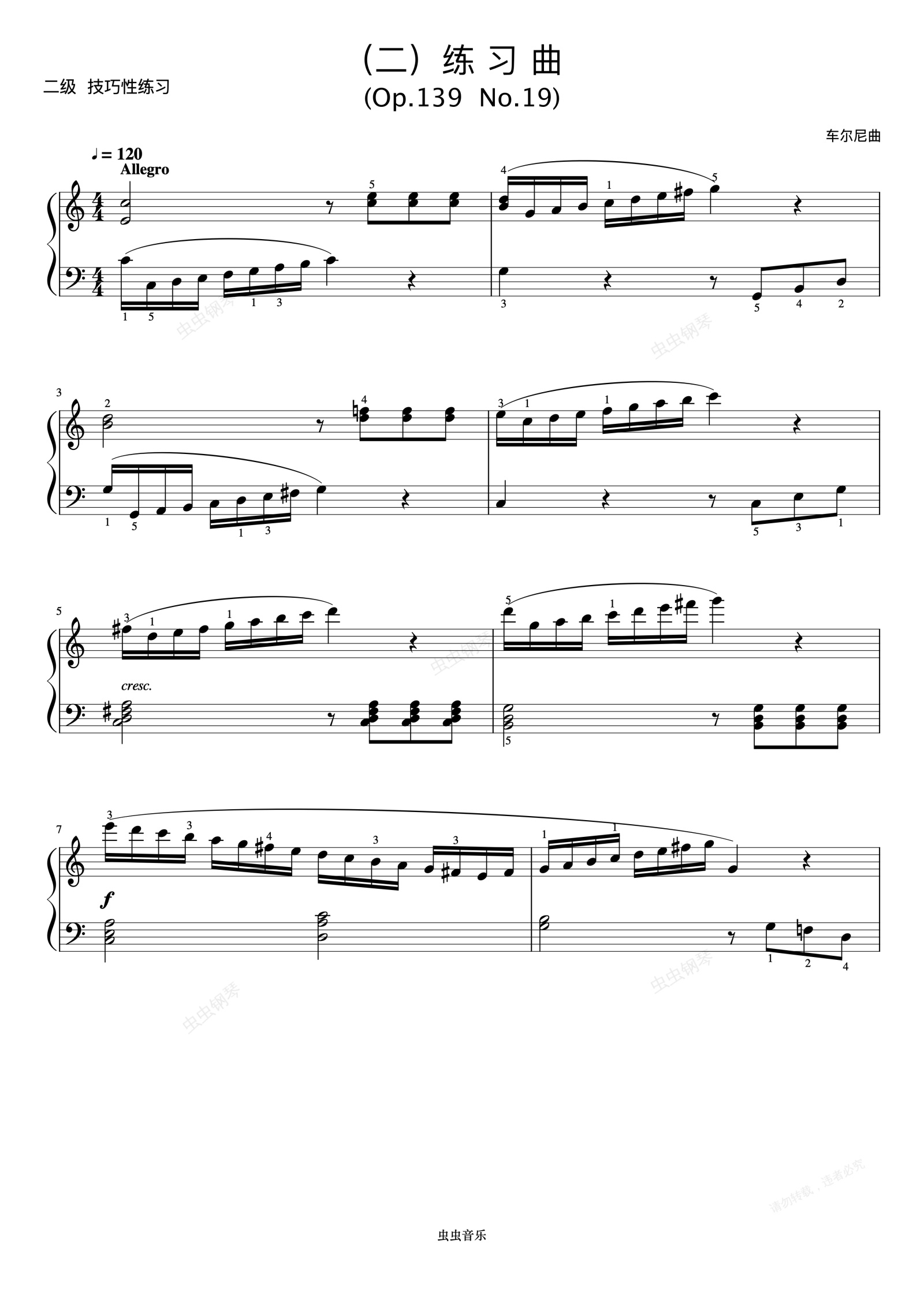 钢琴谱:2级 练习曲 Op.139 No.19《音协钢琴考级曲目 1-5级》