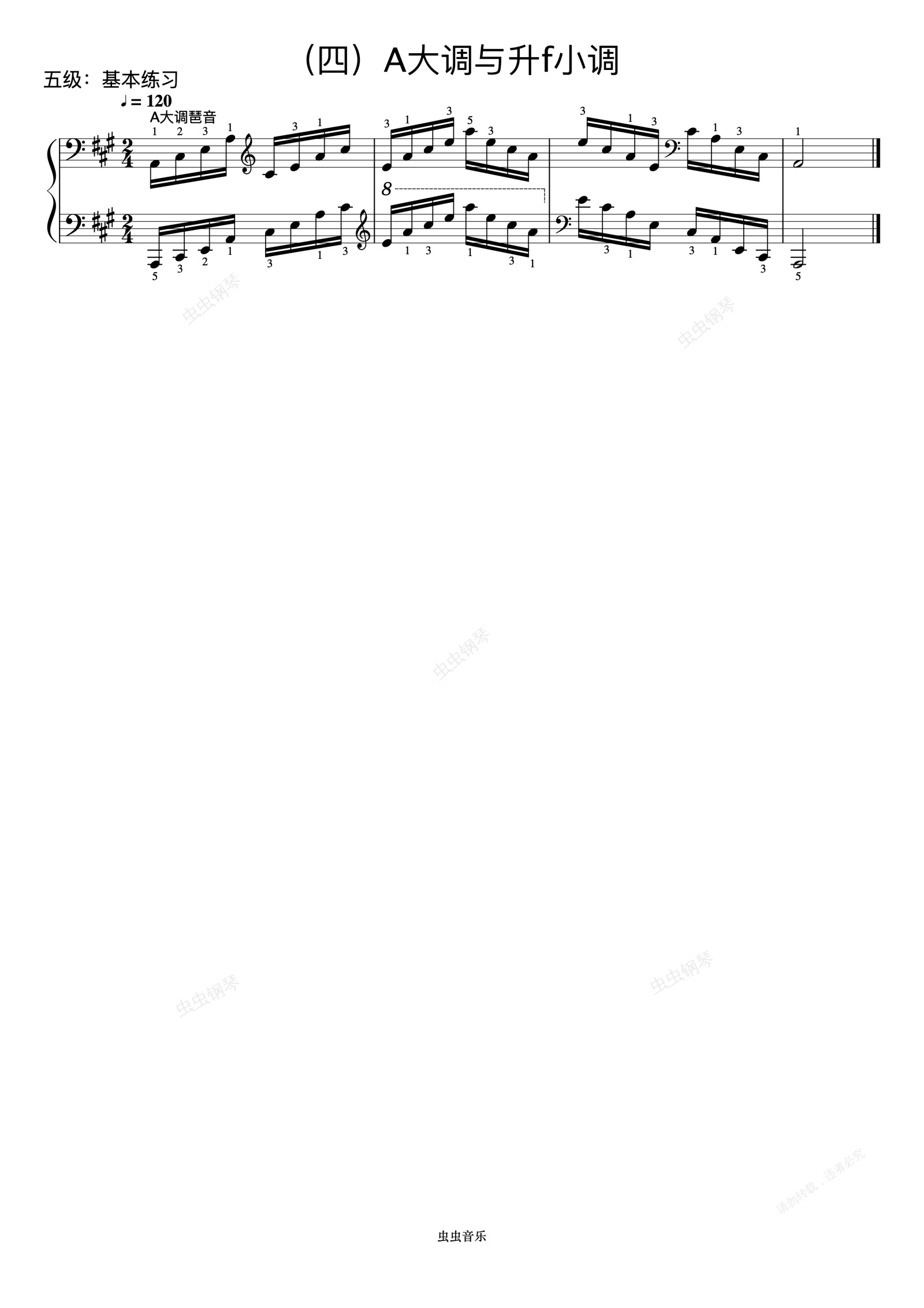 钢琴谱:5级 A大调琶音《音协钢琴考级曲目 1-5级》