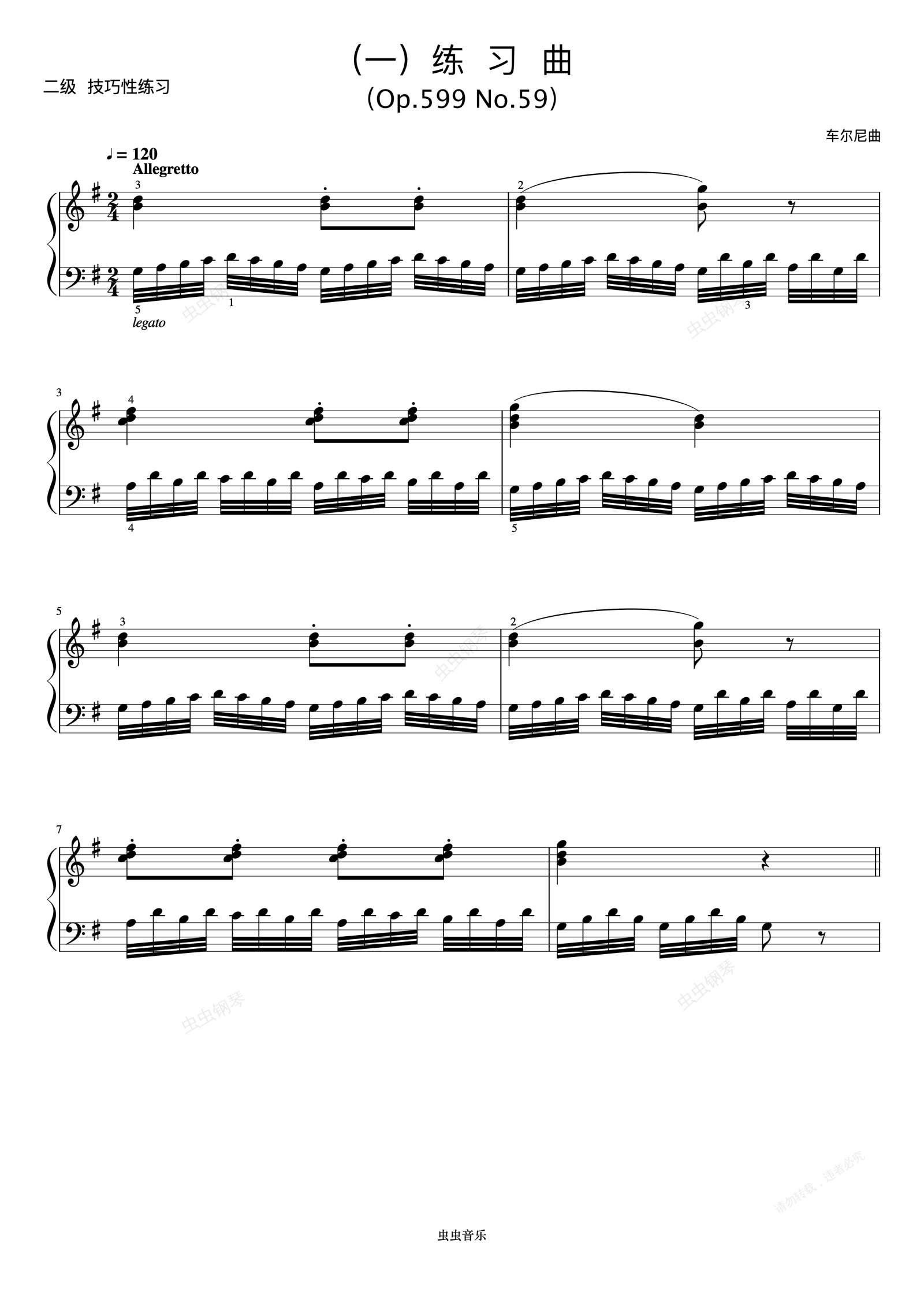 钢琴谱:2级 练习曲 Op.599 No.59《音协钢琴考级曲目 1-5级》