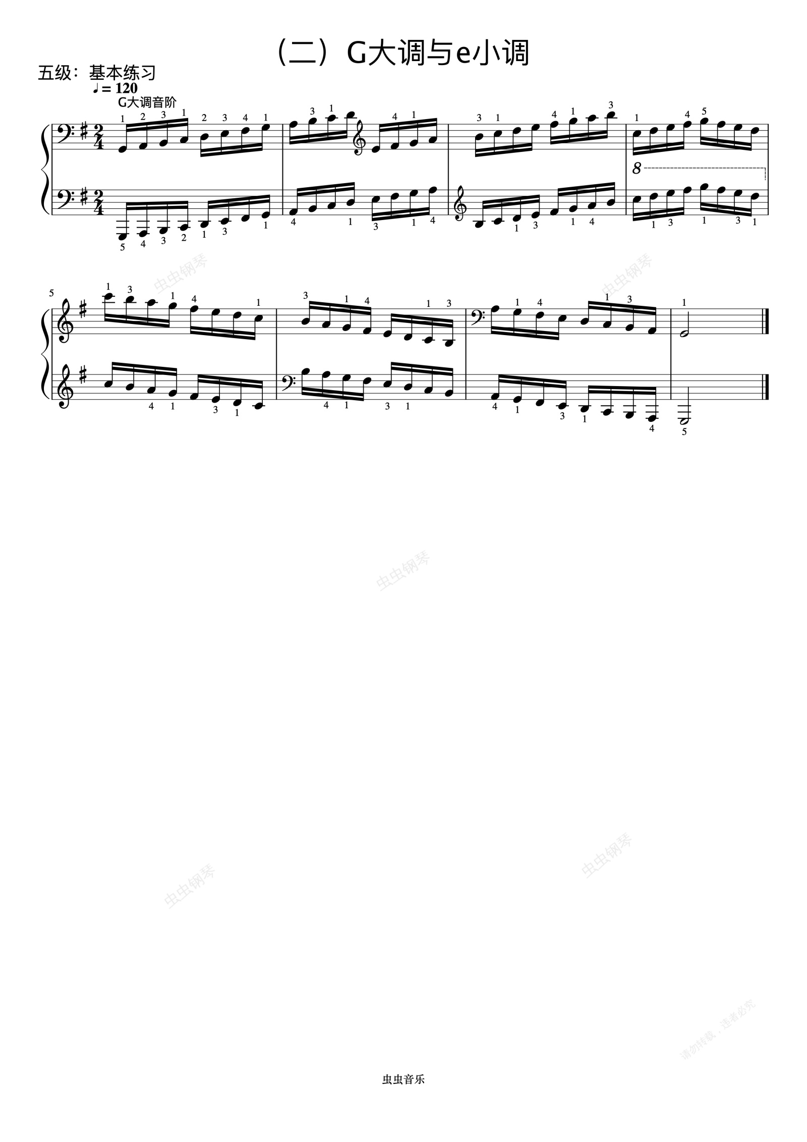 钢琴谱:5级 G大调音阶《音协钢琴考级曲目 1-5级》