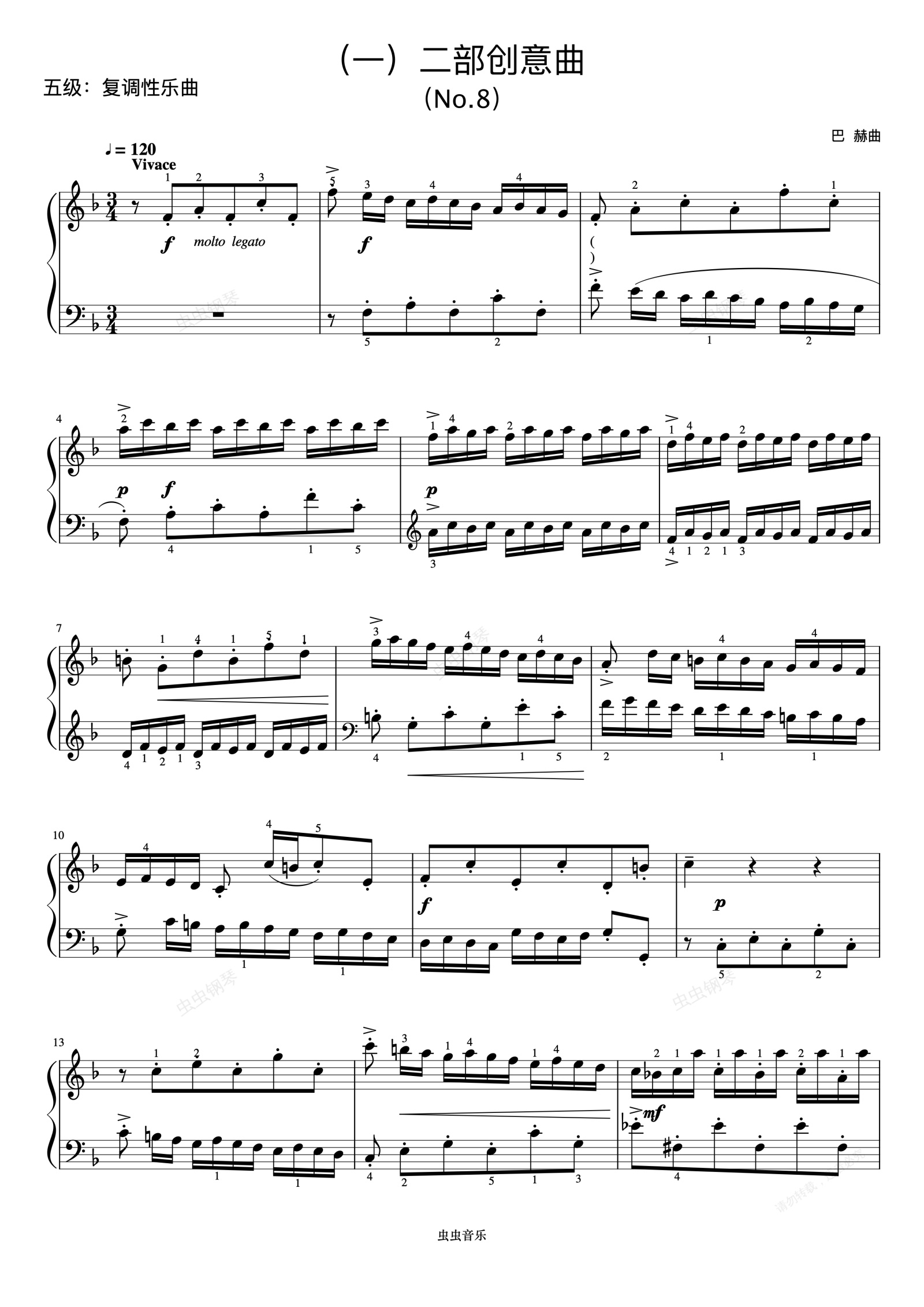 钢琴谱:5级 二部创意曲No.8《音协钢琴考级曲目 1-5级》