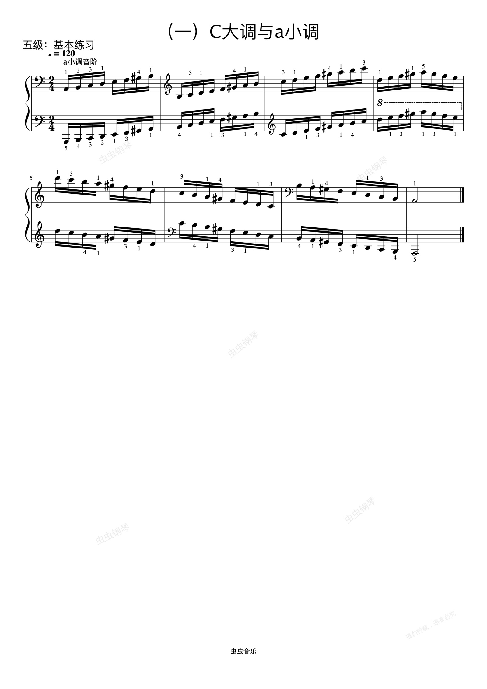 钢琴谱:5级 a小调音阶《音协钢琴考级曲目 1-5级》