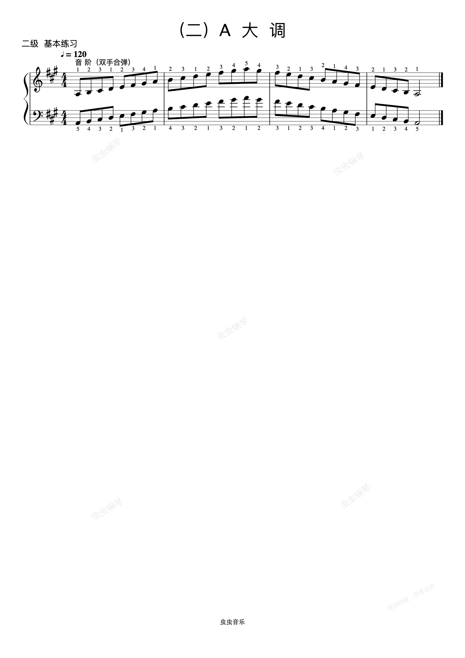 钢琴谱:2级 A大调音阶《音协钢琴考级曲目 1-5级》