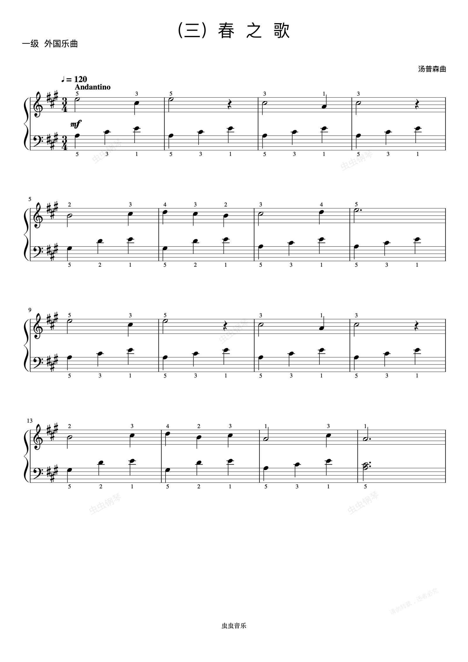 钢琴谱:1级 春之歌《音协钢琴考级曲目 1-5级》