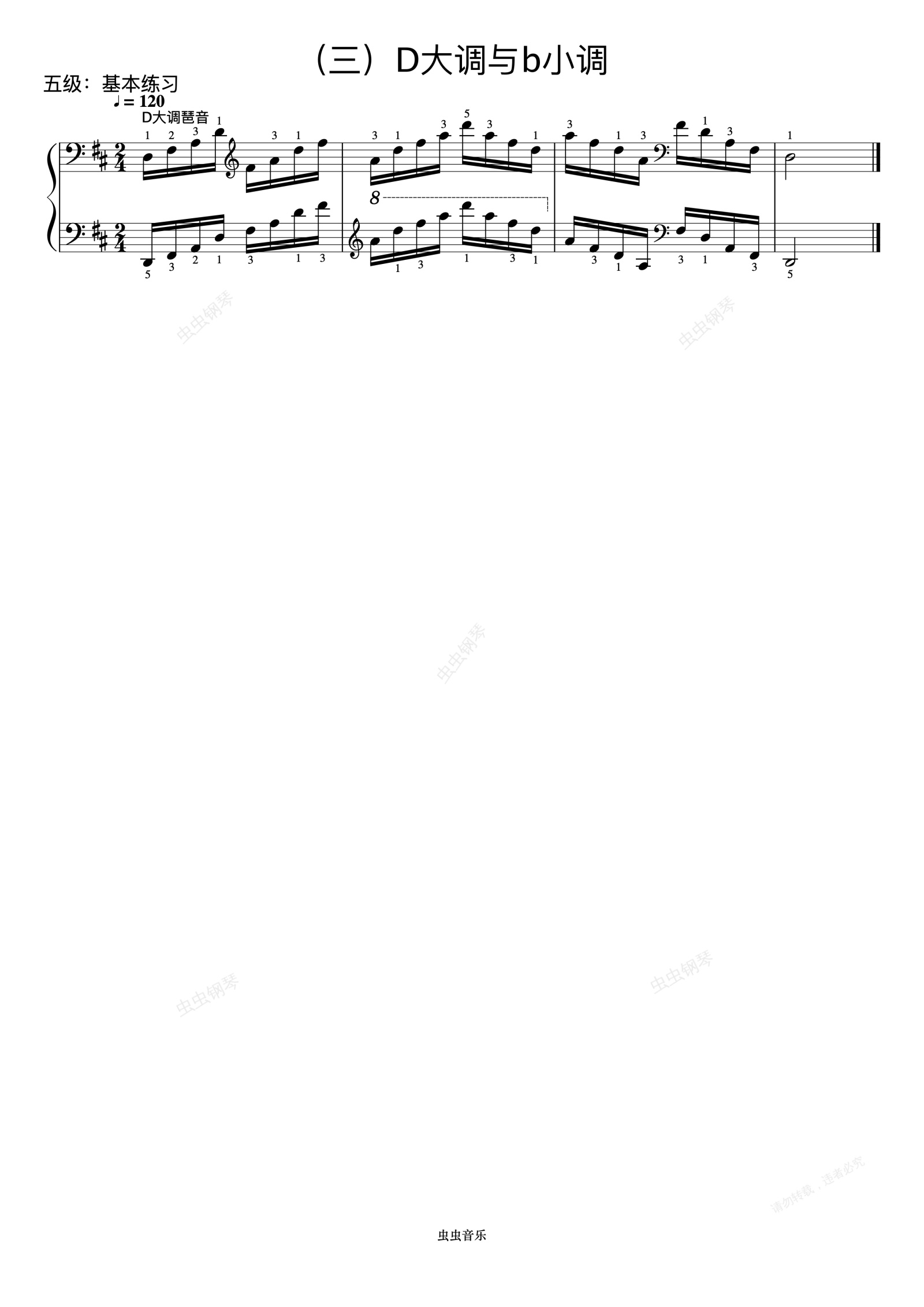 钢琴谱:5级 D大调琶音《音协钢琴考级曲目 1-5级》