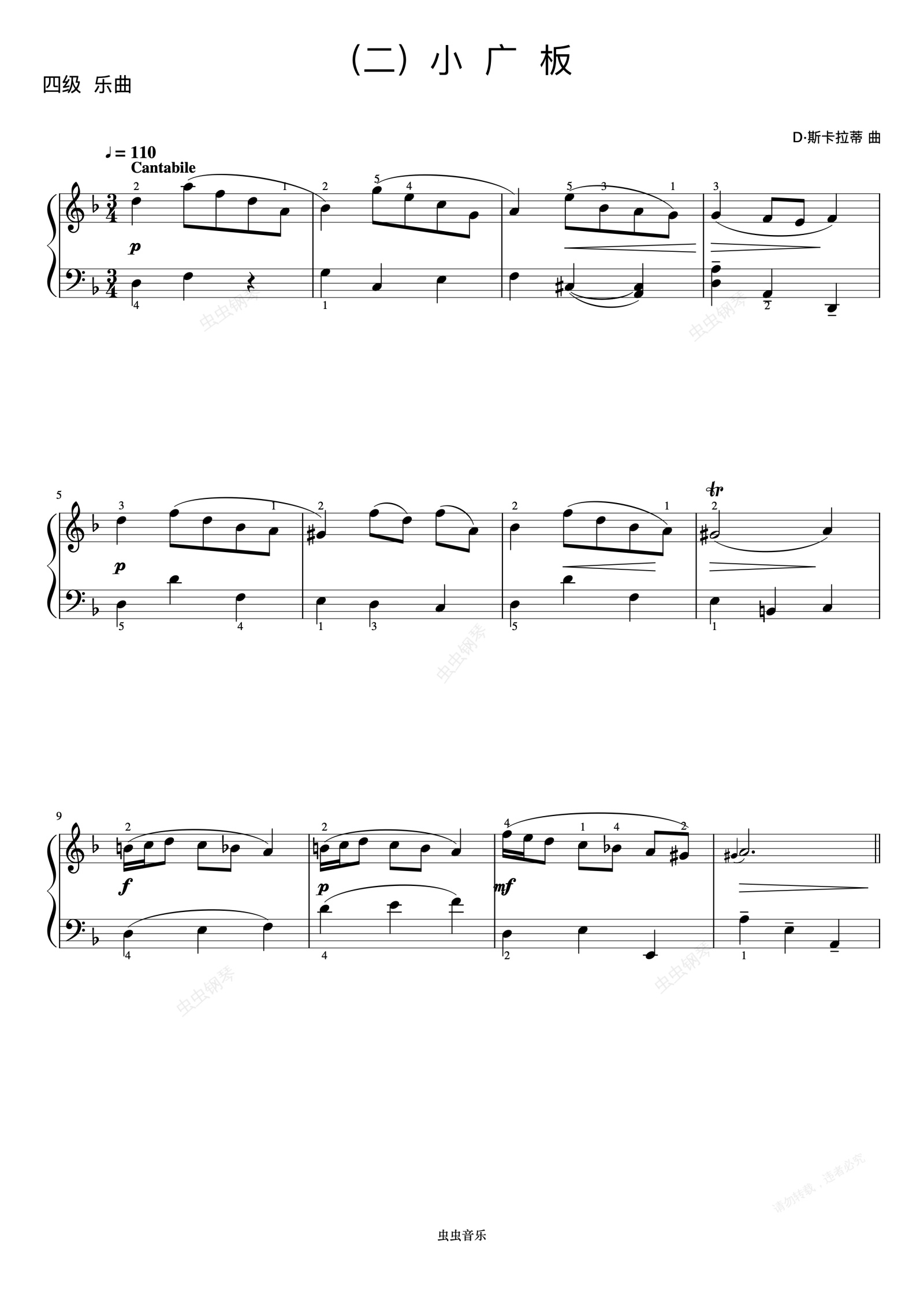 钢琴谱:4级 小广板《音协钢琴考级曲目 1-5级》
