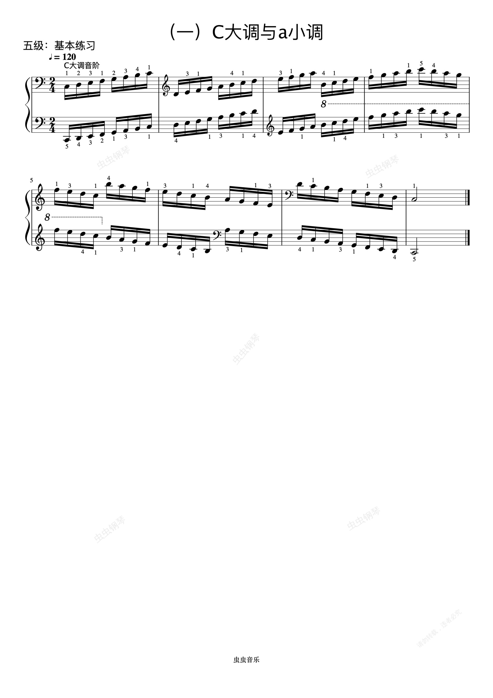 钢琴谱:5级 C大调音阶《音协钢琴考级曲目 1-5级》