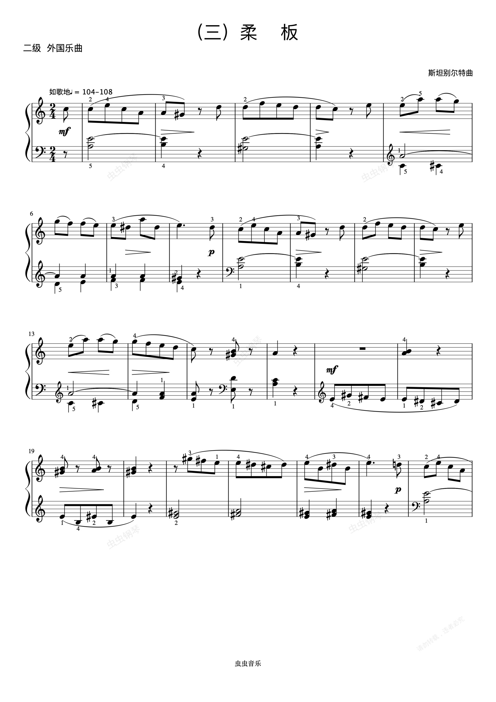钢琴谱:2级 柔板《音协钢琴考级曲目 1-5级》