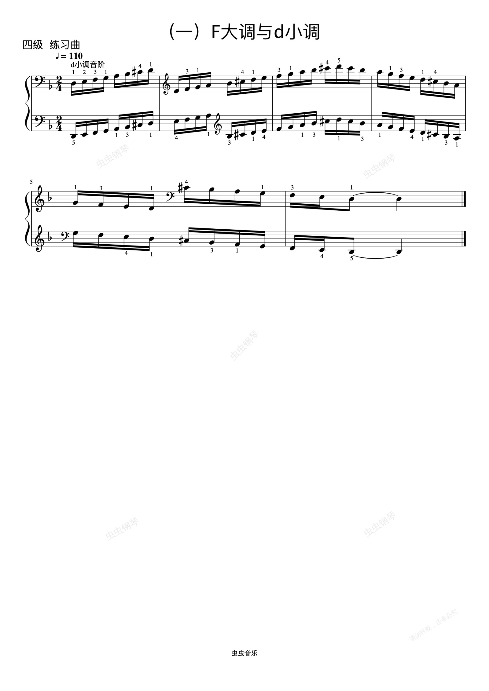 钢琴谱:4级 d小调音阶《音协钢琴考级曲目 1-5级》