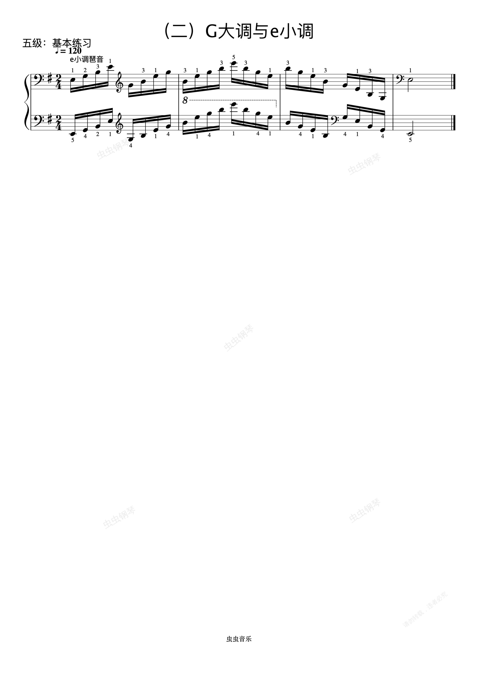 钢琴谱:5级 e小调琶音《音协钢琴考级曲目 1-5级》