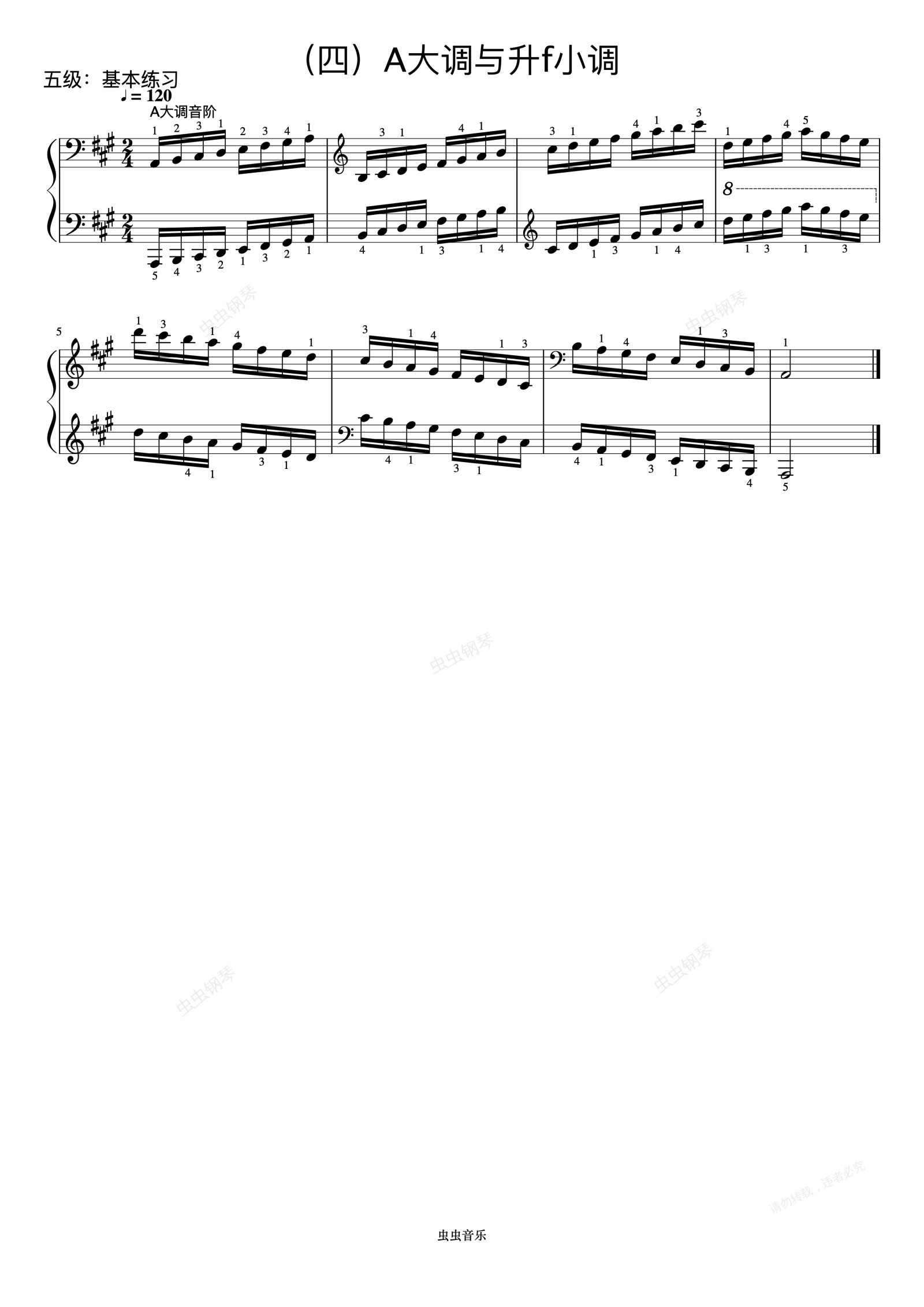 钢琴谱:5级 A大调音阶《音协钢琴考级曲目 1-5级》