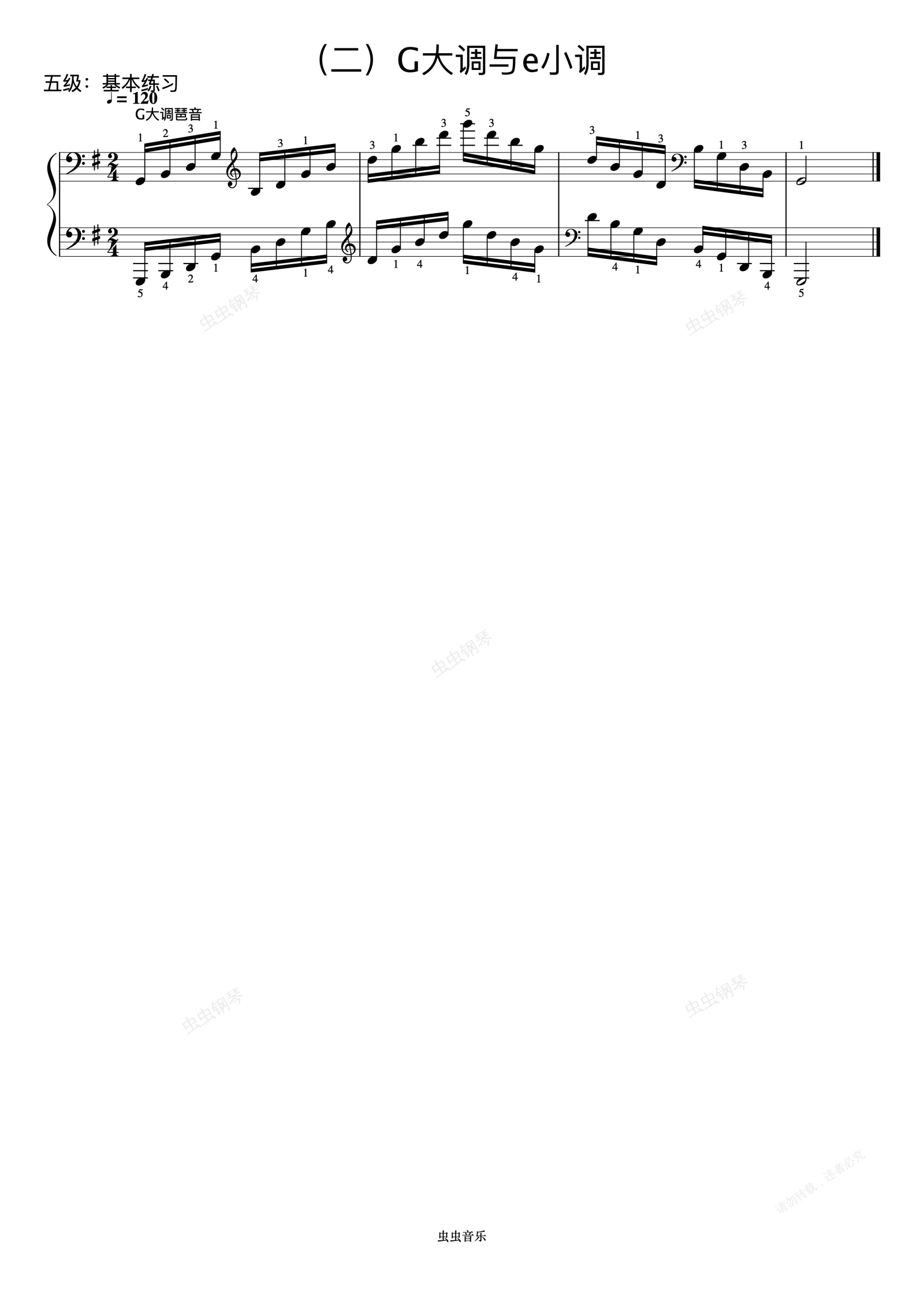 钢琴谱:5级 G大调琶音《音协钢琴考级曲目 1-5级》