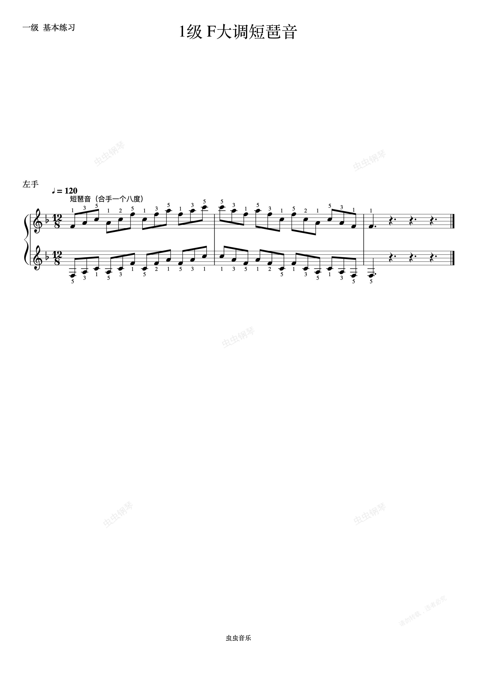钢琴谱:1级 F大调短琶音《音协钢琴考级曲目 1-5级》